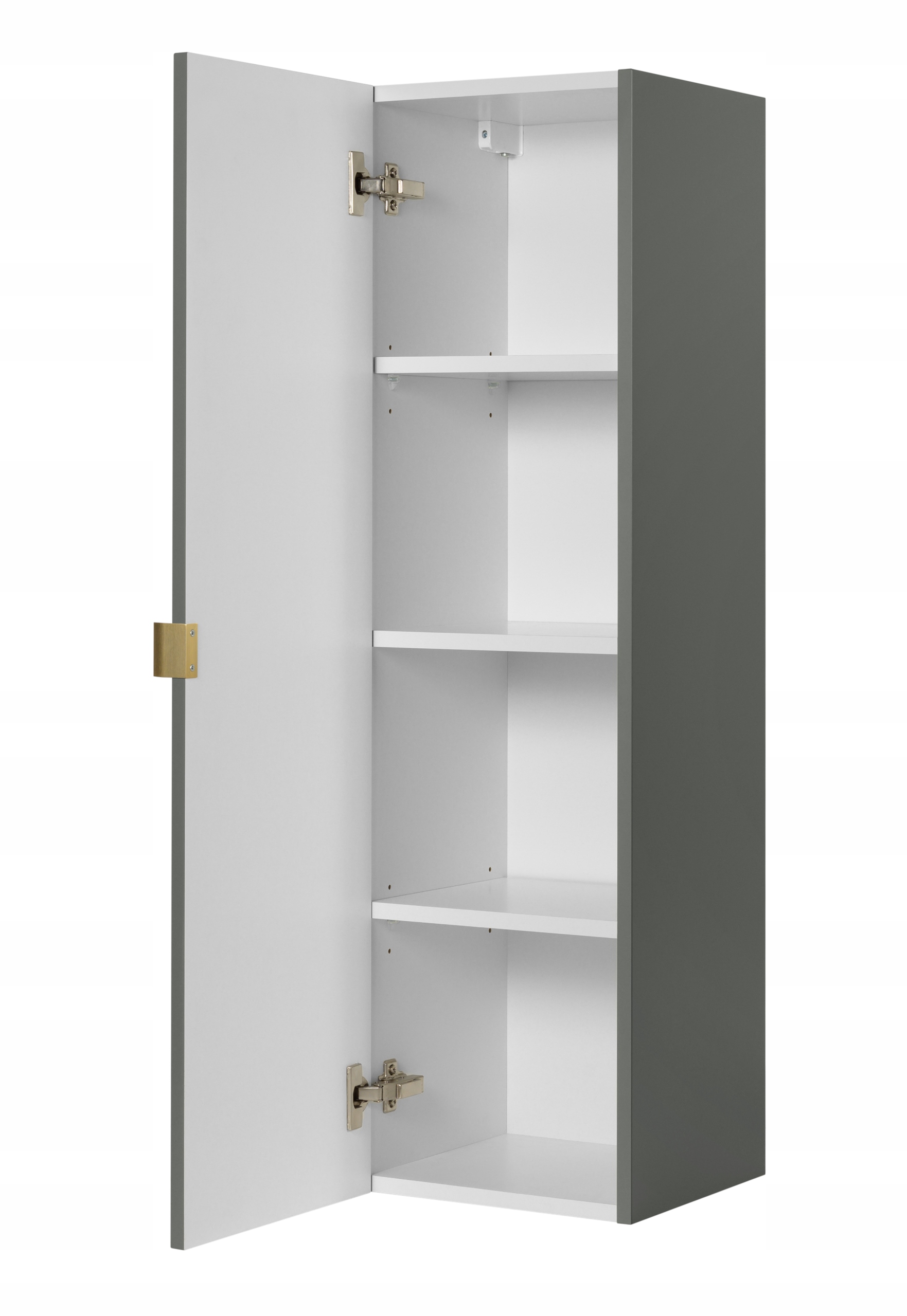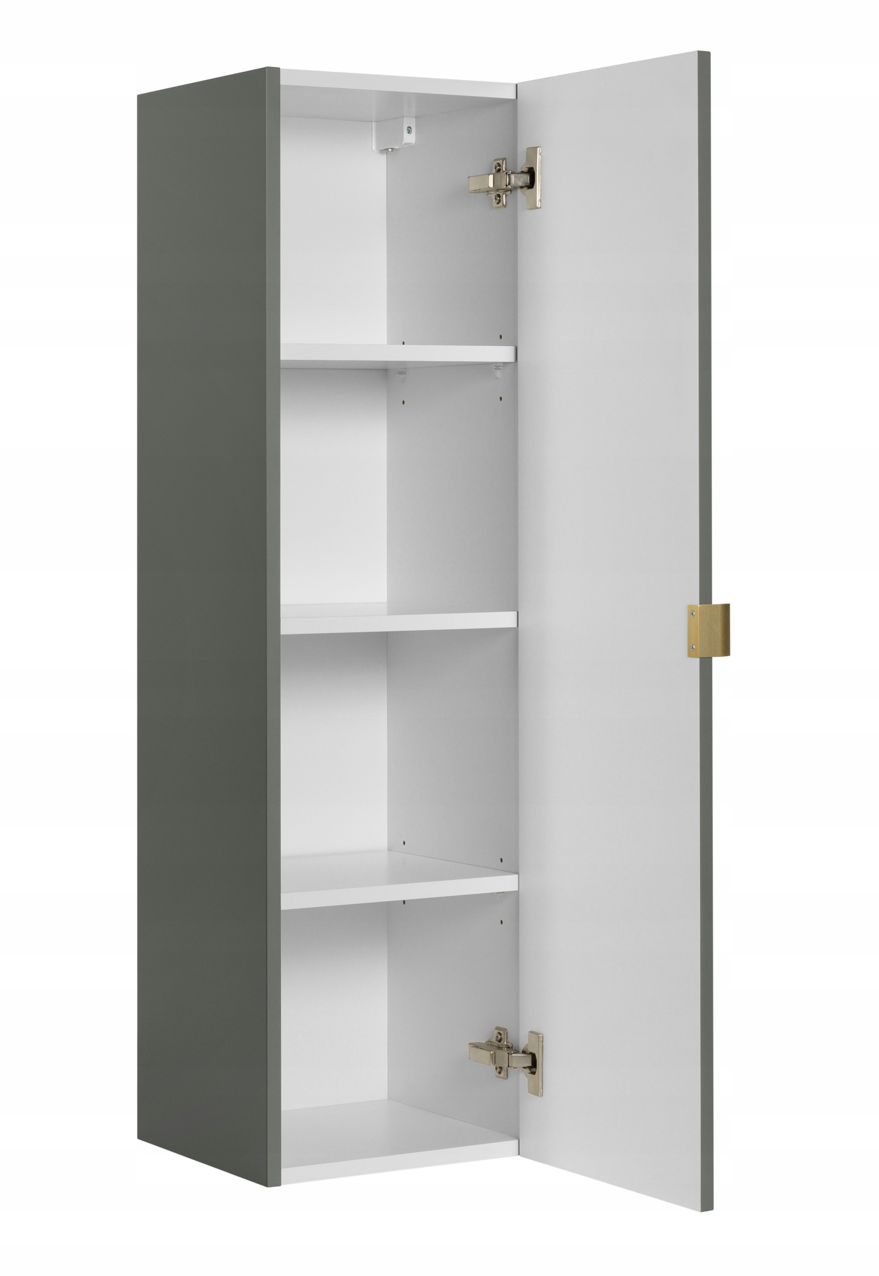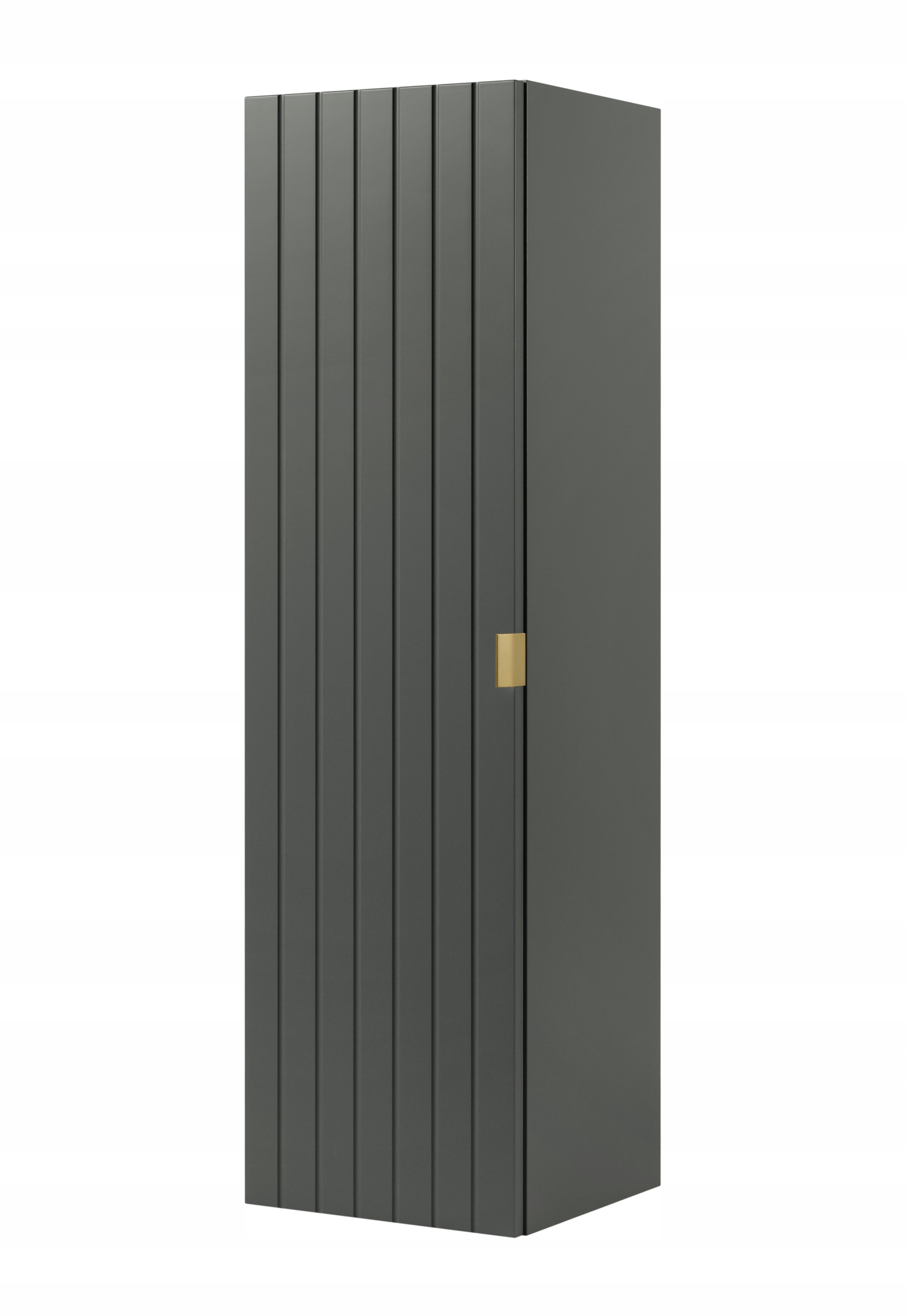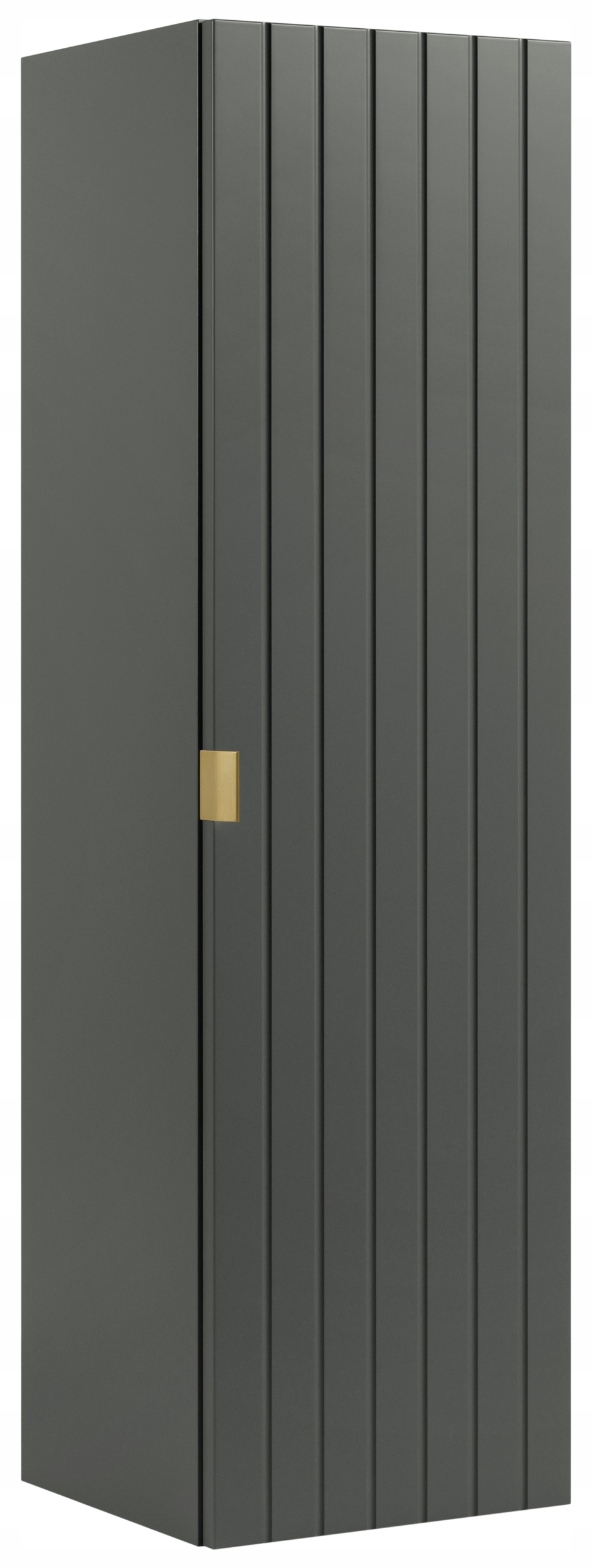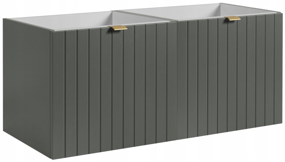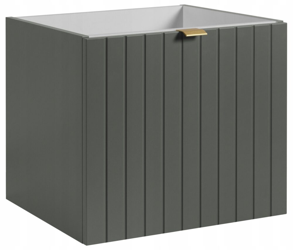 Kolekcja HARMO łączy elegancki design z funkcjonalnymi rozwiązaniami, które doskonale sprawdzą się w nowoczesnych łazienkach. Pionowo frezowane fronty z płyty MDF w zielonym półmacie podkreślają subtelny i nowoczesny charakter mebla, a wisząca konstrukcja dodaje lekkości i ułatwia sprzątanie. Drzwi wyposażono w zawiasy z funkcją cichego domyku, które zapewniają komfort użytkowania. W zestawie znajdują się trzy warianty uchwytów w kolorach: czarnym, złotym oraz srebrnym szczotkowanym. Meble wyprodukowane w Polsce z wysokiej jakości materiałów.
