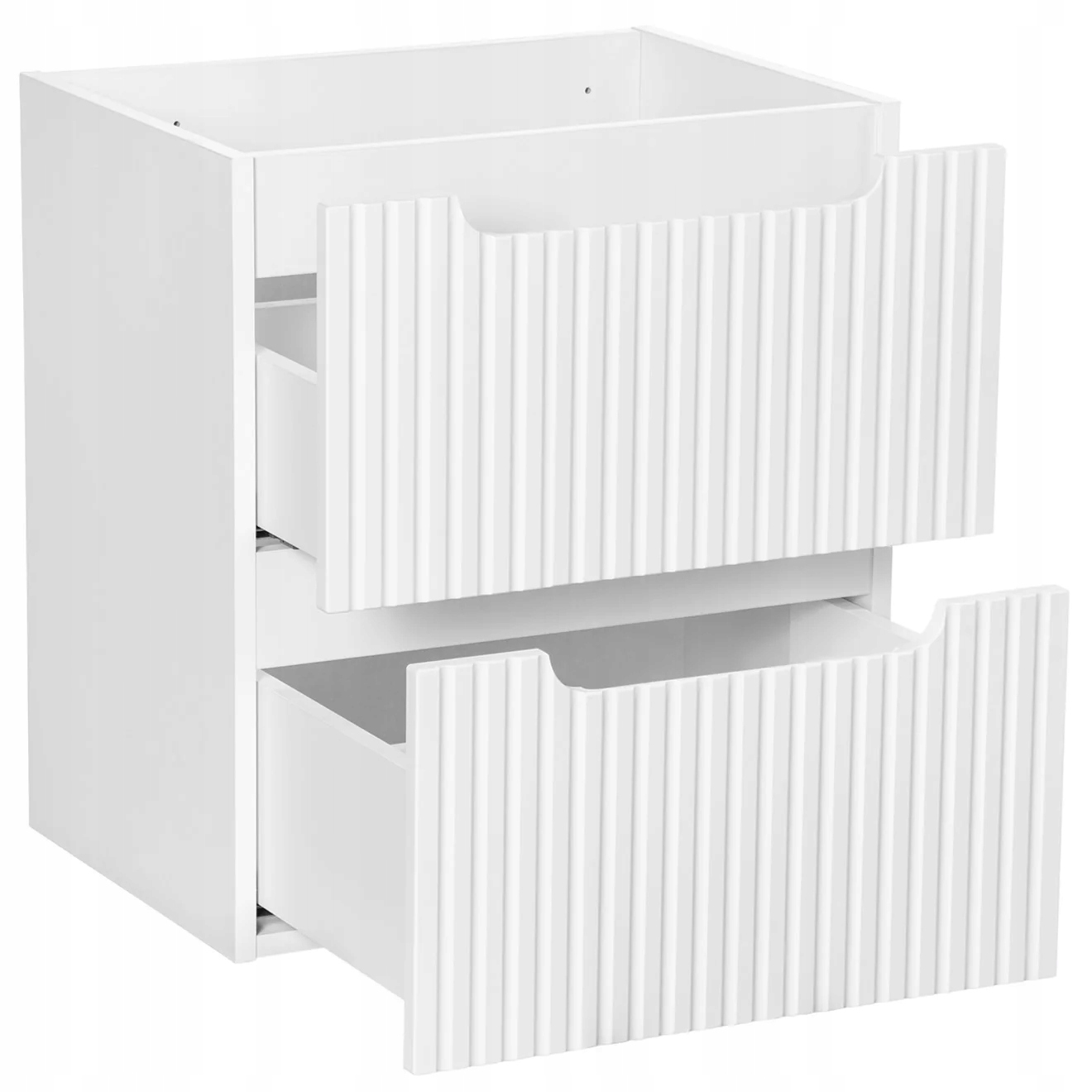 Szafka łazienkowa NOVA 50 cm to połączenie nowoczesnego minimalizmu z delikatną elegancją. Matowe wykończenie w odcieniu białego matu nadaje wnętrzu świeżości i harmonii, a pionowe frezowania na frontach podkreślają subtelny, dekoracyjny charakter mebla. Kolekcja NOVA została zaprojektowana z myślą o nowoczesnych łazienkach, w których liczy się czystość formy i funkcjonalne piękno.