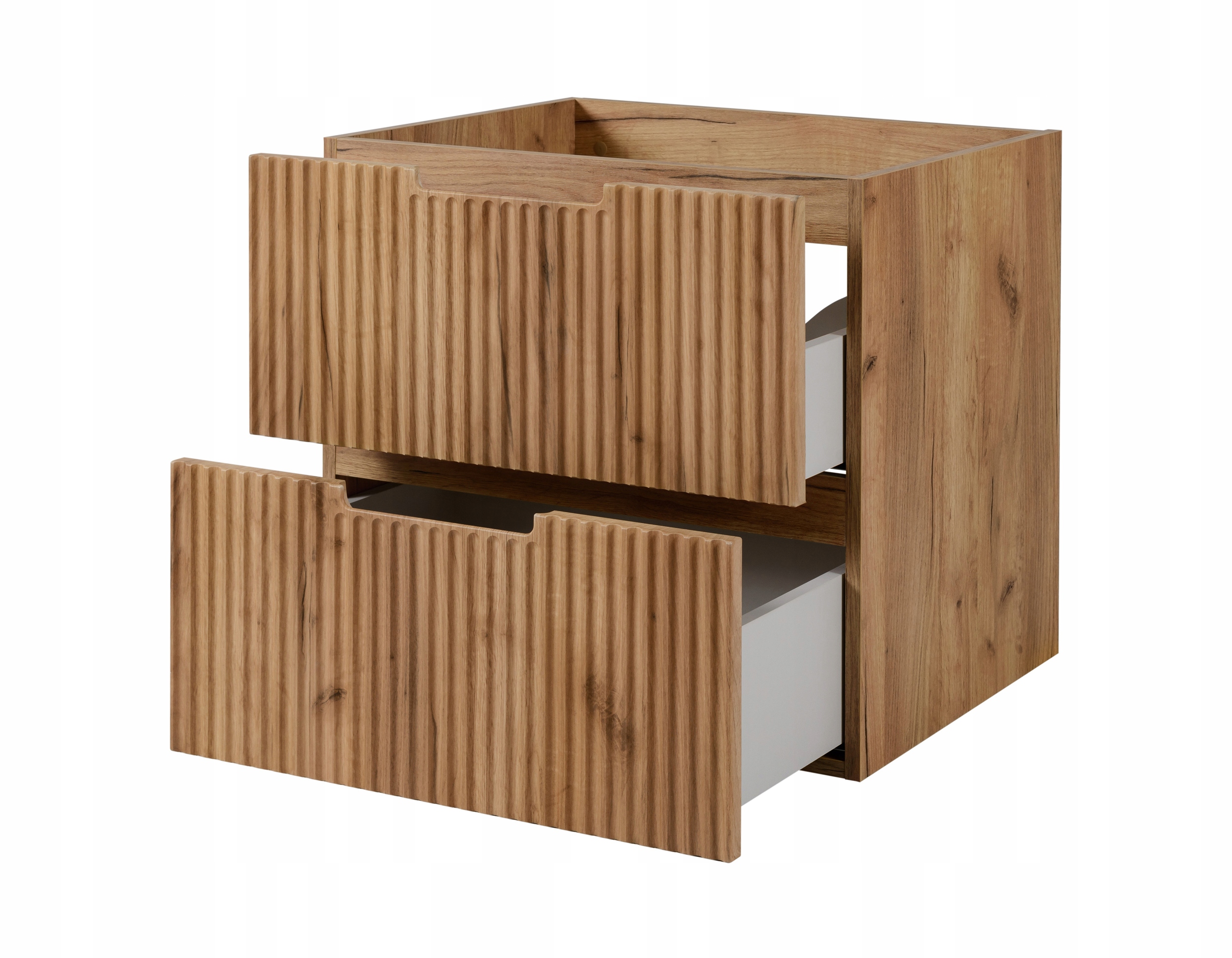 Szafka pod umywalkę z kolekcji VENA w kolorze dąb craft to połączenie nowoczesnego designu i naturalnego uroku drewna. Wyraziste frezowane fronty w ciepłym, drewnianym odcieniu nadają łazience przytulny i elegancki charakter. Zintegrowany uchwyt frezowany idealnie wpisuje się w minimalistyczną estetykę, oferując wygodę użytkowania bez potrzeby stosowania tradycyjnych gałek czy uchwytów.