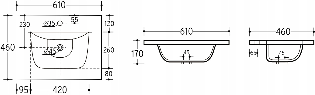 Umywalka ceramiczna SKY 61 cm – 1 szt.