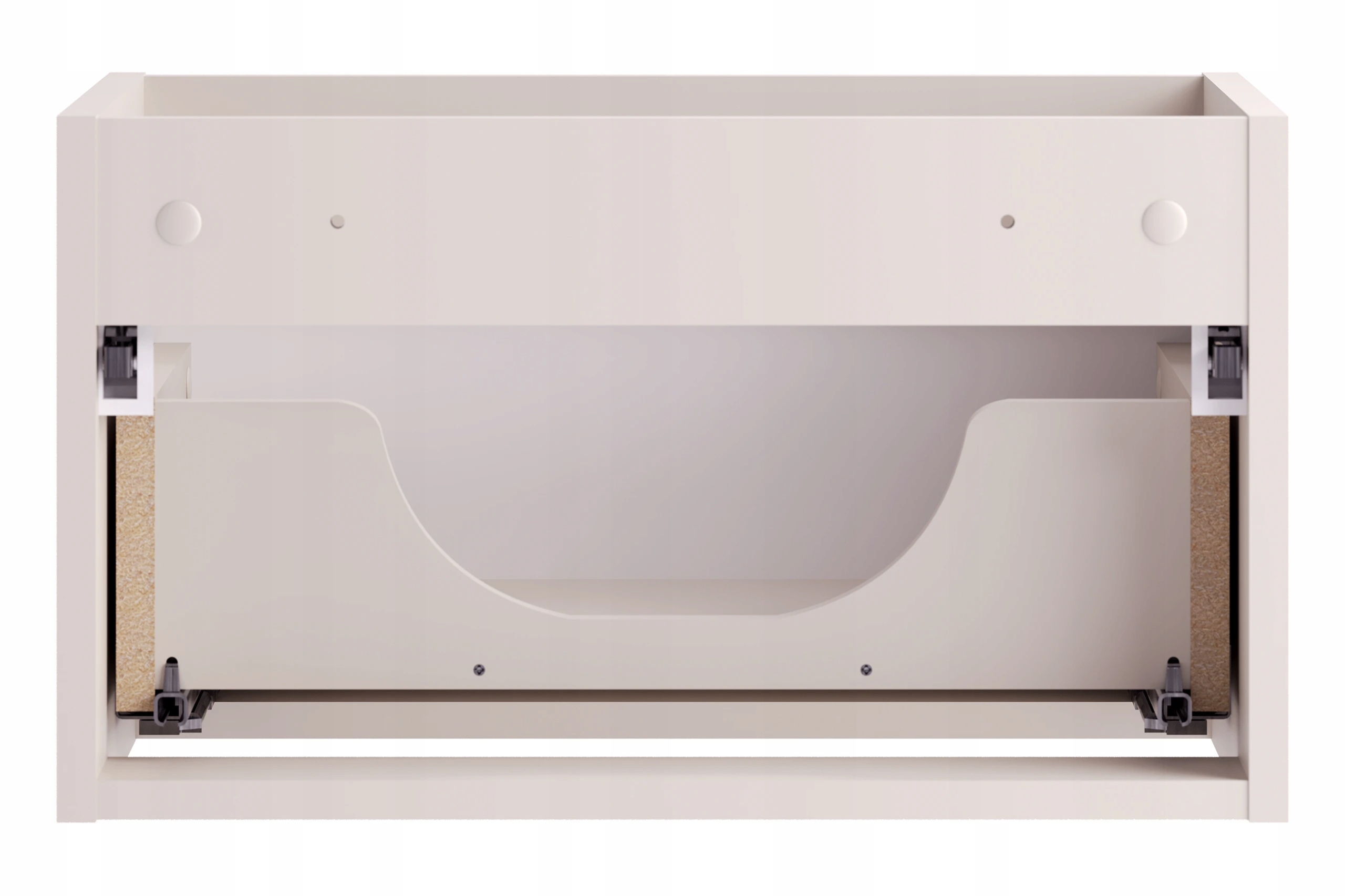 Model o szerokości 50 cm został zaprojektowany jako kompaktowa szafka pod umywalkę, idealna zarówno do mniejszych łazienek, jak i jako element większej zabudowy. Szafka ma wysokość 28,7 cm i głębokość 39 cm, a jedna pojemna szuflada zapewnia wygodne miejsce do przechowywania najpotrzebniejszych akcesoriów łazienkowych. Zastosowany system cichego domykania zwiększa komfort codziennego użytkowania, a montaż wiszący nadaje meblowi lekkości i ułatwia utrzymanie czystości w strefie podłogi.