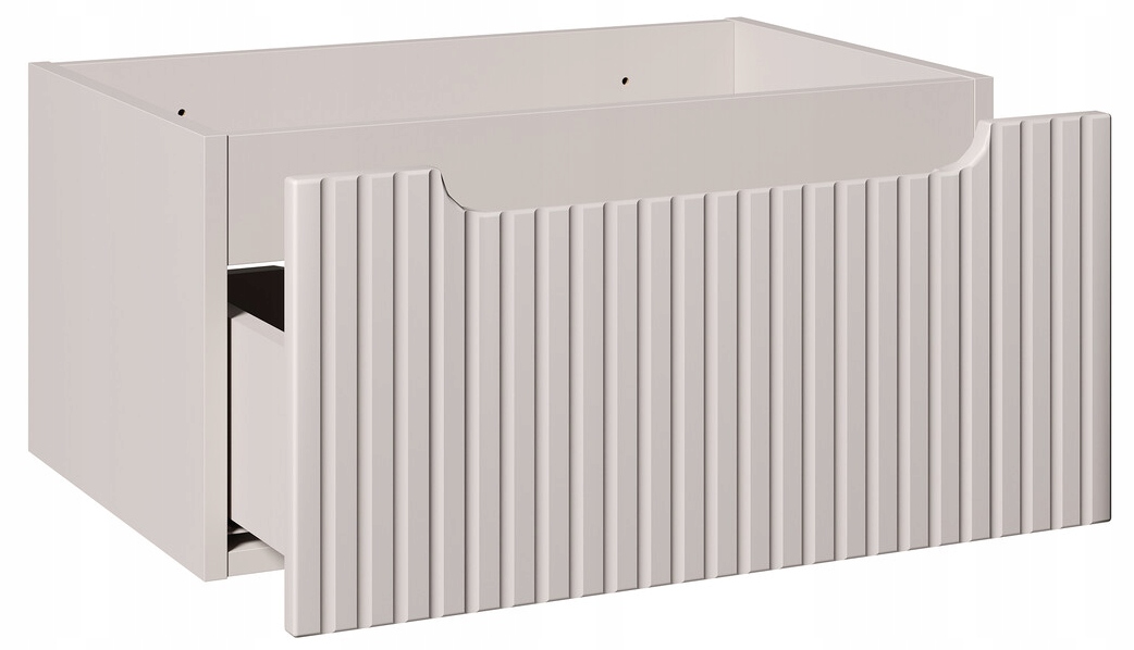Kolekcja NOVA CASHMERE to połączenie nowoczesnego minimalizmu z eleganckim, ciepłym odcieniem kaszmiru, który wprowadza do łazienki spokój i harmonię. Charakterystyczne pionowe ryflowania frontów oraz zintegrowany podchwyt nadają meblom ponadczasowy wygląd, dzięki czemu kolekcja doskonale odnajduje się zarówno w nowoczesnych, jak i bardziej klasycznych aranżacjach.