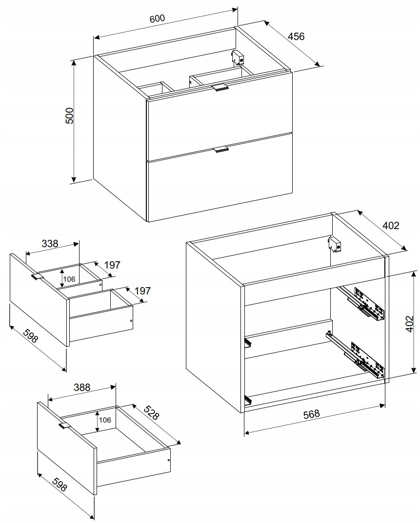 Szafka została wyposażona w dwie przestronne szuflady, które pozwalają na wygodne uporządkowanie kosmetyków, środków czystości i innych łazienkowych drobiazgów. System cichego i płynnego domykania sprawia, że korzystanie z mebla jest wyjątkowo komfortowe i bezgłośne, a także zapobiega nadmiernemu zużyciu elementów.