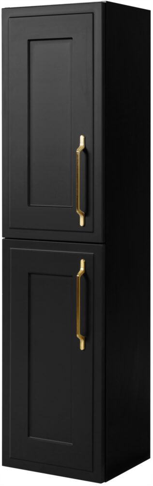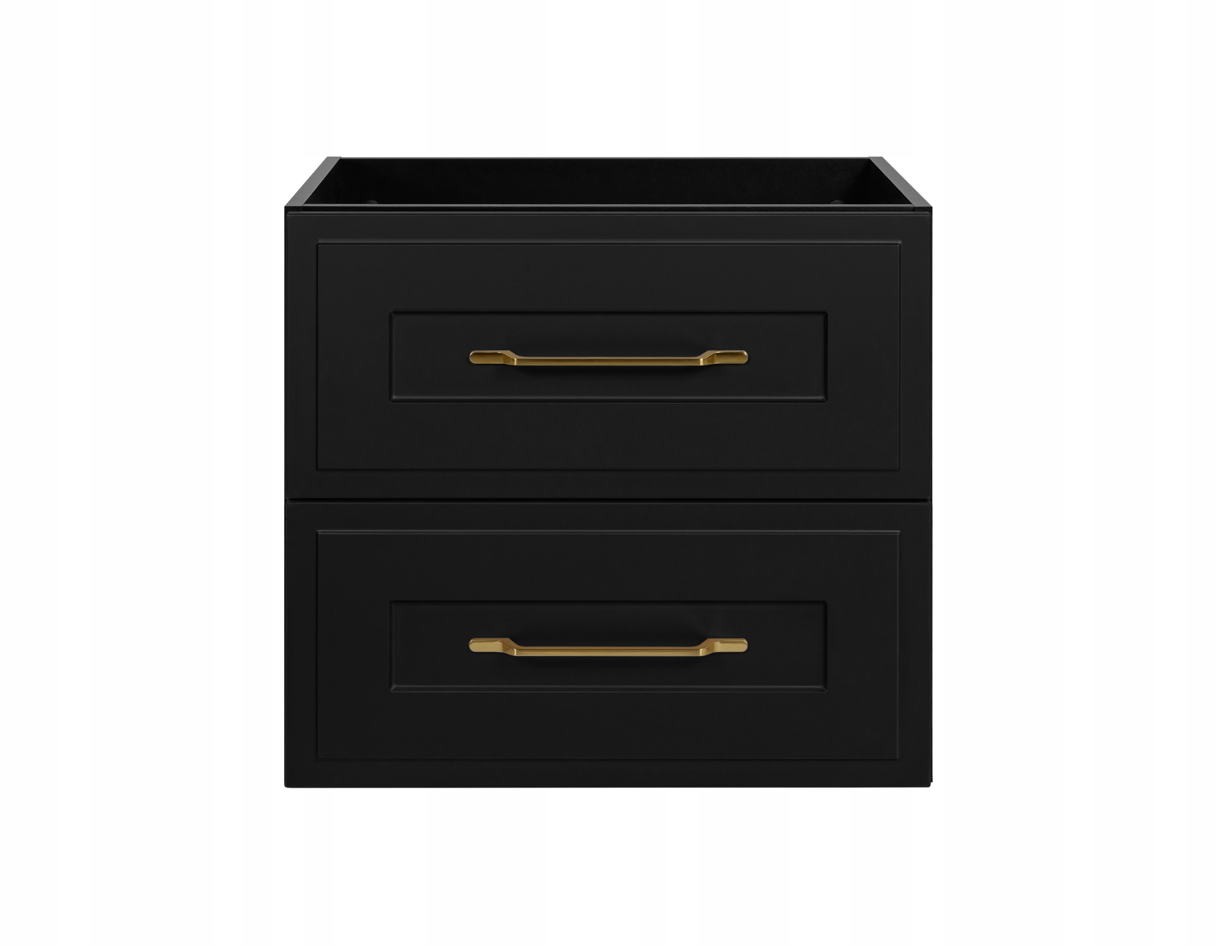 Zastosowanie prowadnic z funkcją cichego domyku (SOFT CLOSE) zapewnia maksymalny komfort użytkowania, a metalowy uchwyt w kolorze złotym podkreśla luksusowy charakter mebla. Dwie pojemne szuflady oferują funkcjonalną przestrzeń do przechowywania niezbędnych akcesoriów łazienkowych.