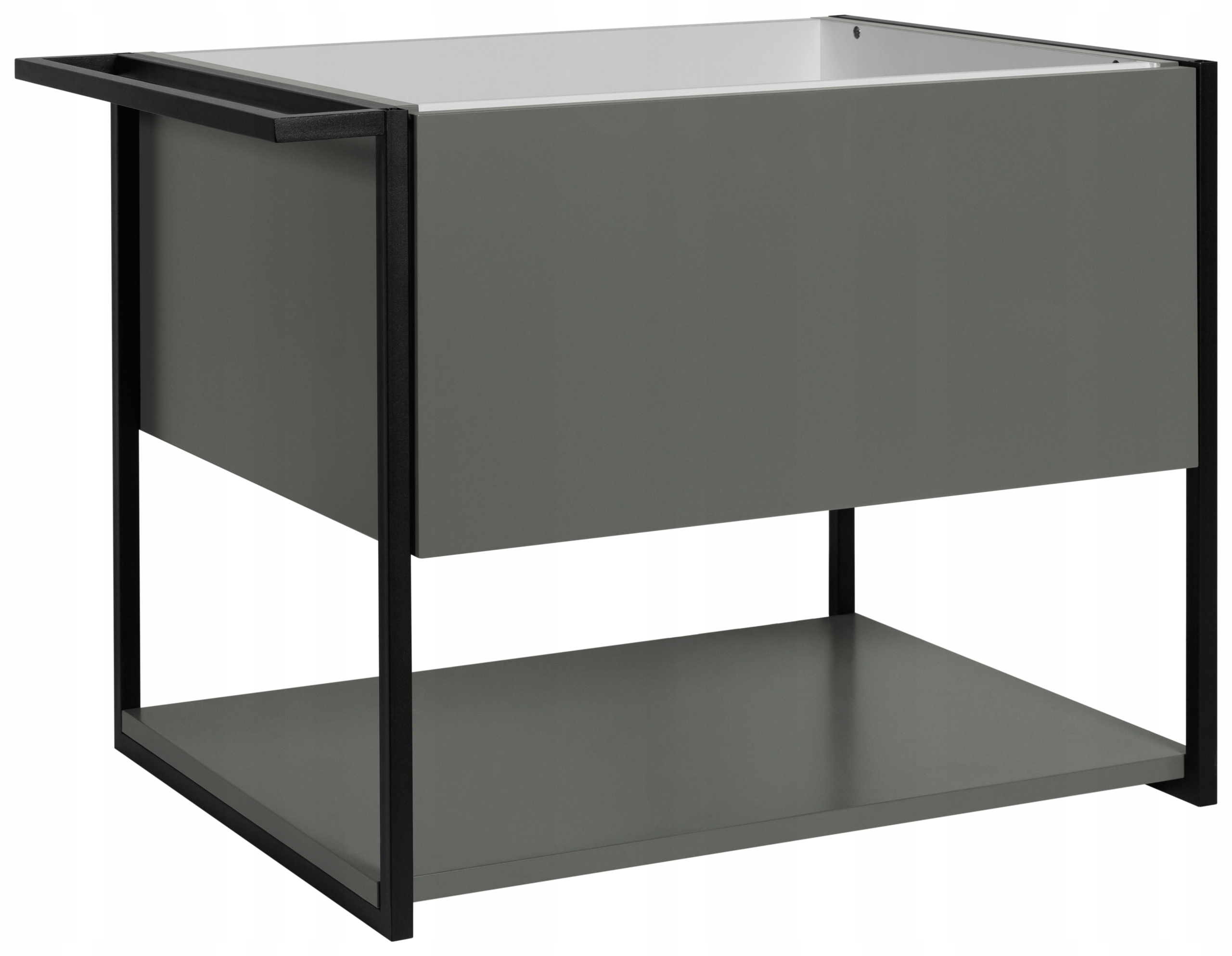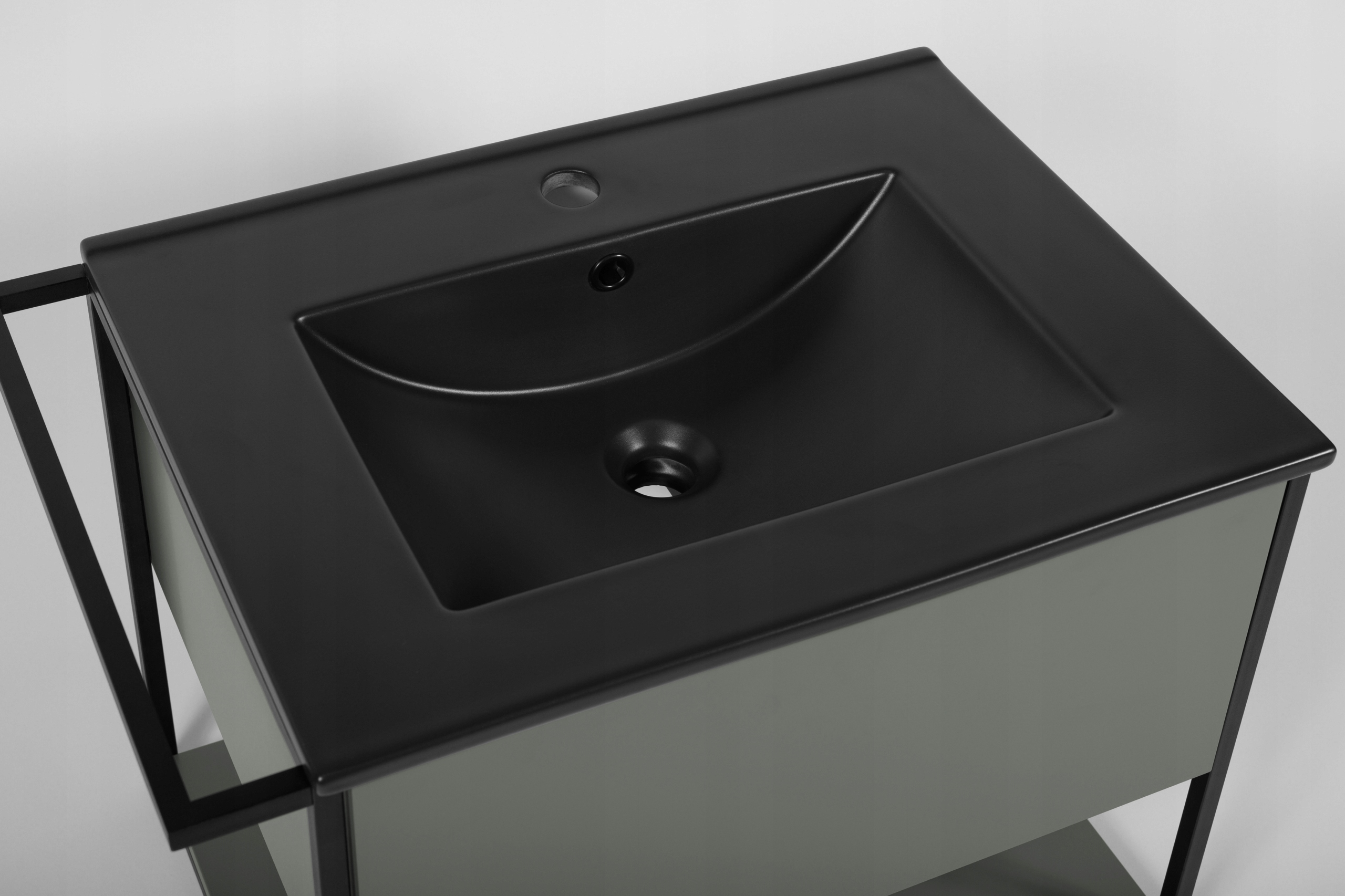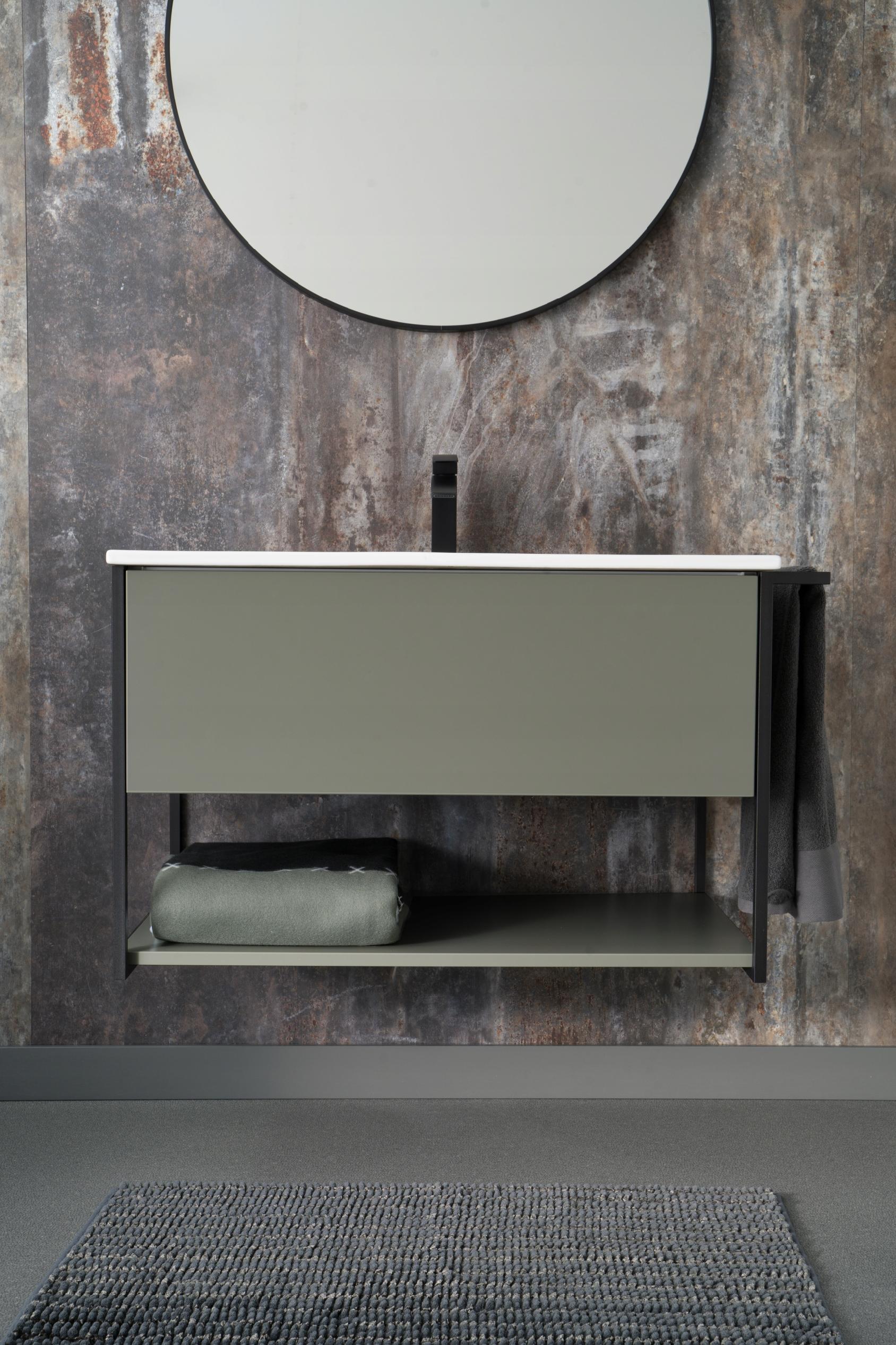 Zielona szafka z kolekcji LOV to stylowa propozycja do nowoczesnych i loftowych łazienek, łącząca prostą formę z industrialnymi akcentami. Kompaktowa szerokość 60 cm sprawia, że mebel doskonale sprawdza się również w mniejszych przestrzeniach, zapewniając przy tym funkcjonalność i nowoczesny wygląd. Lakierowane na półmat fronty i korpus w odcieniu stonowanej zieleni wprowadzają do wnętrza świeżość i elegancję. Czarna, metalowa rama boczna nadaje bryle charakterystyczny, loftowy sznyt. Mebel posiada jedną pojemną szufladę z systemem push-to-open oraz otwartą półkę w dolnej części, która idealnie nadaje się na ręczniki lub dekoracyjne akcenty. Dodatkowym atutem jest metalowy wieszak, który można zamontować po dowolnej stronie, zwiększając tym samym praktyczność szafki. Dzięki uniwersalnej formie i solidnemu wykonaniu meble z serii LOV z łatwością dopasowują się do różnych stylów łazienek – od surowych i nowoczesnych po bardziej klasyczne i eleganckie.
