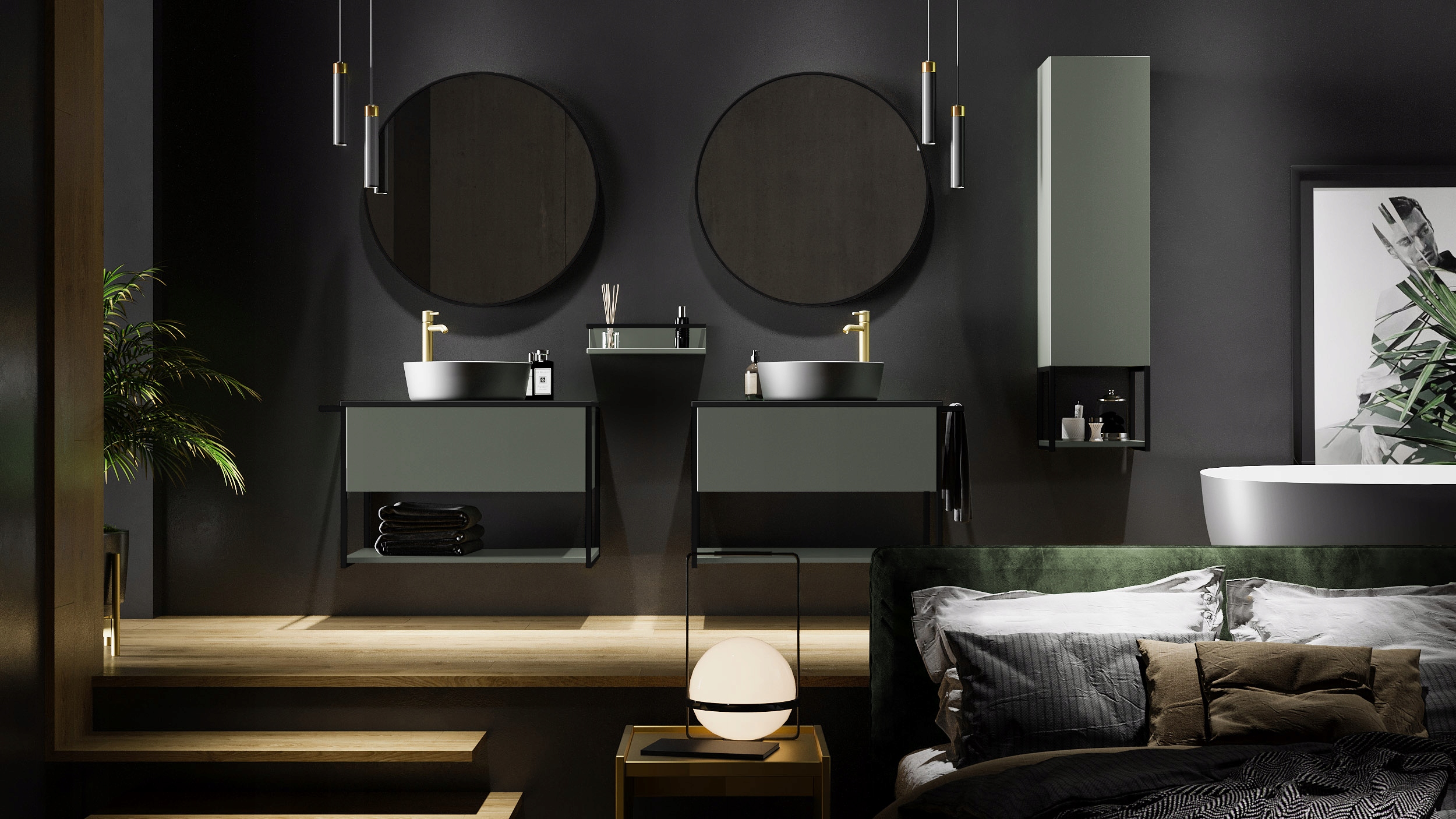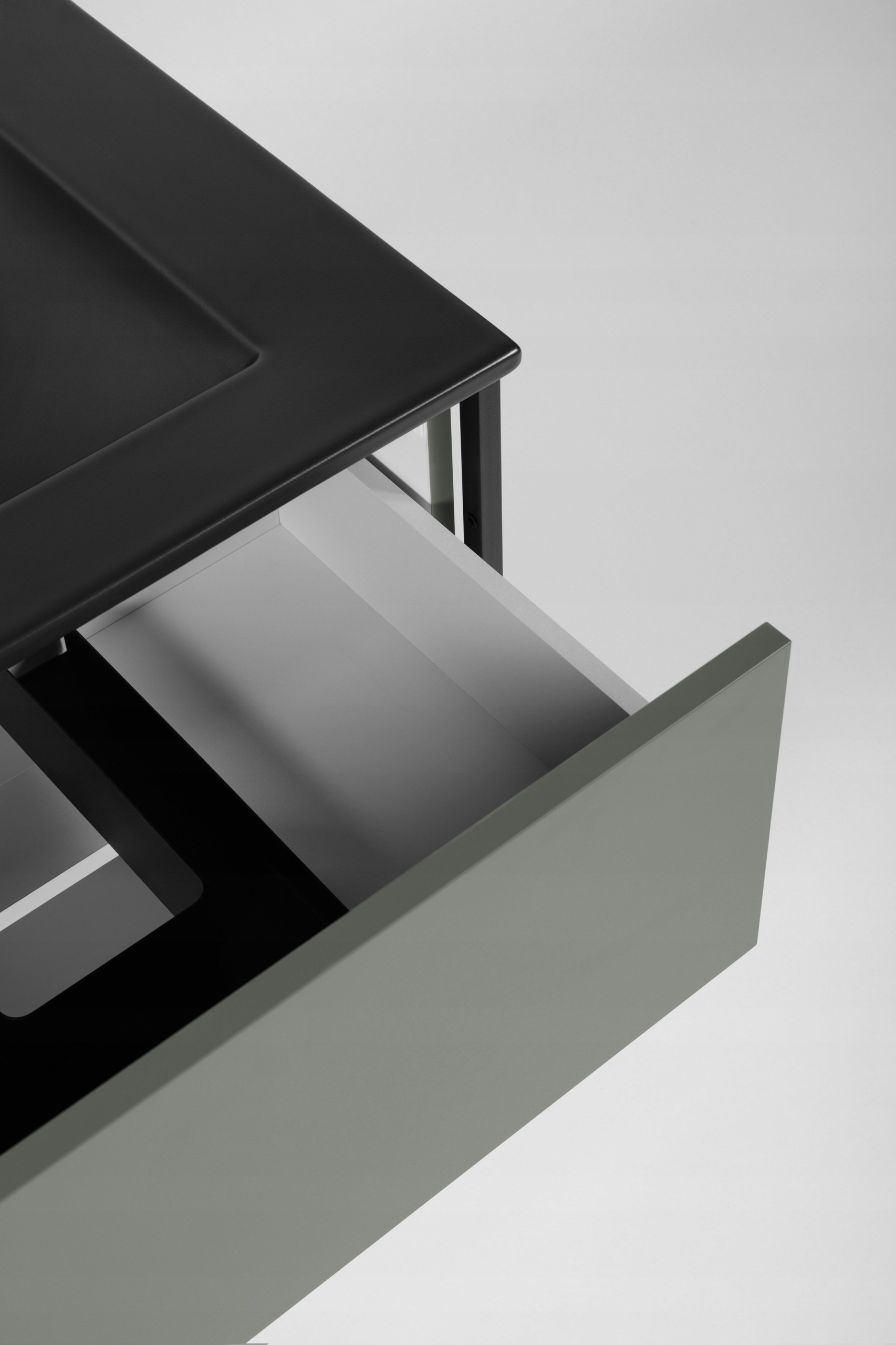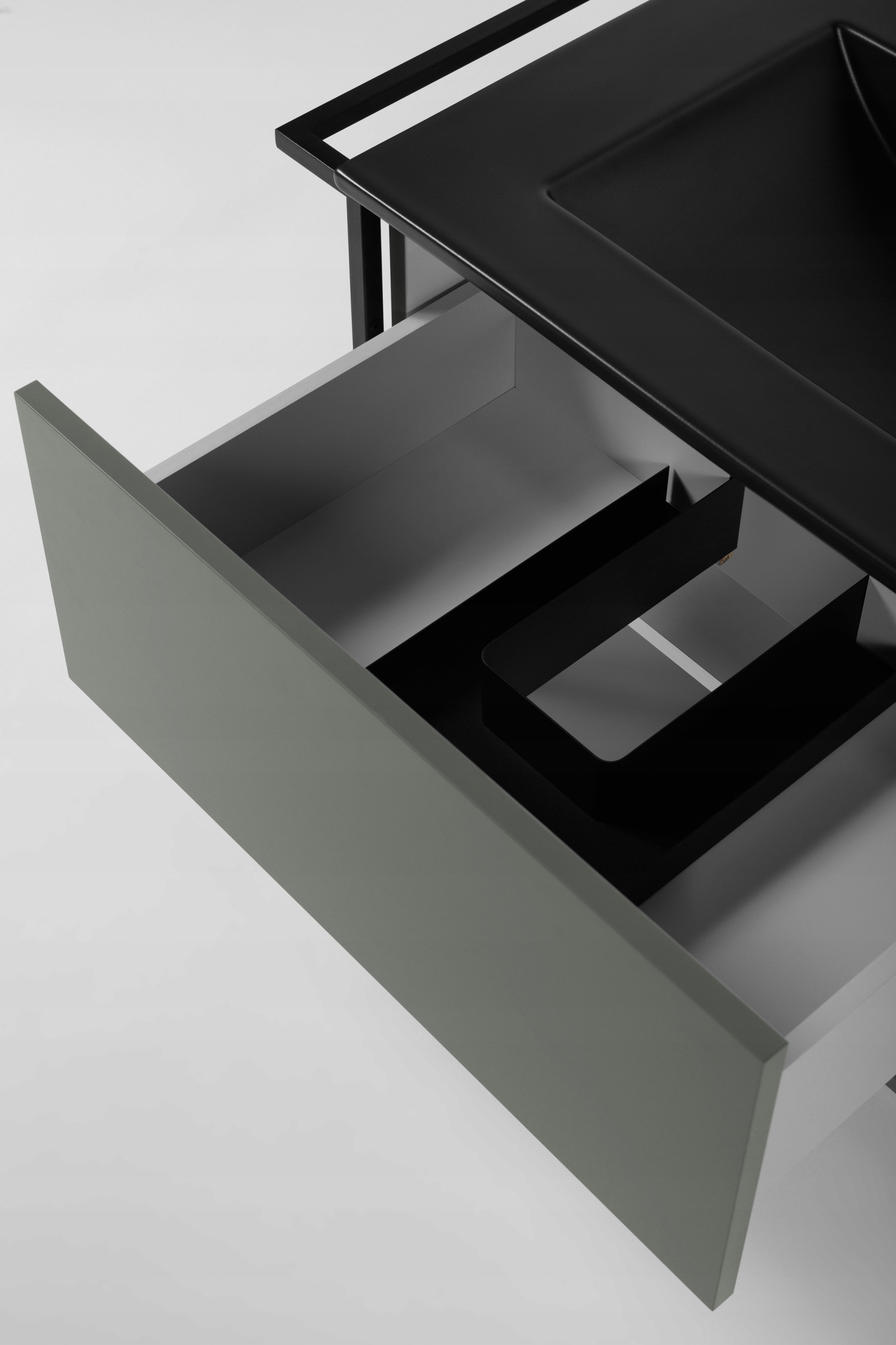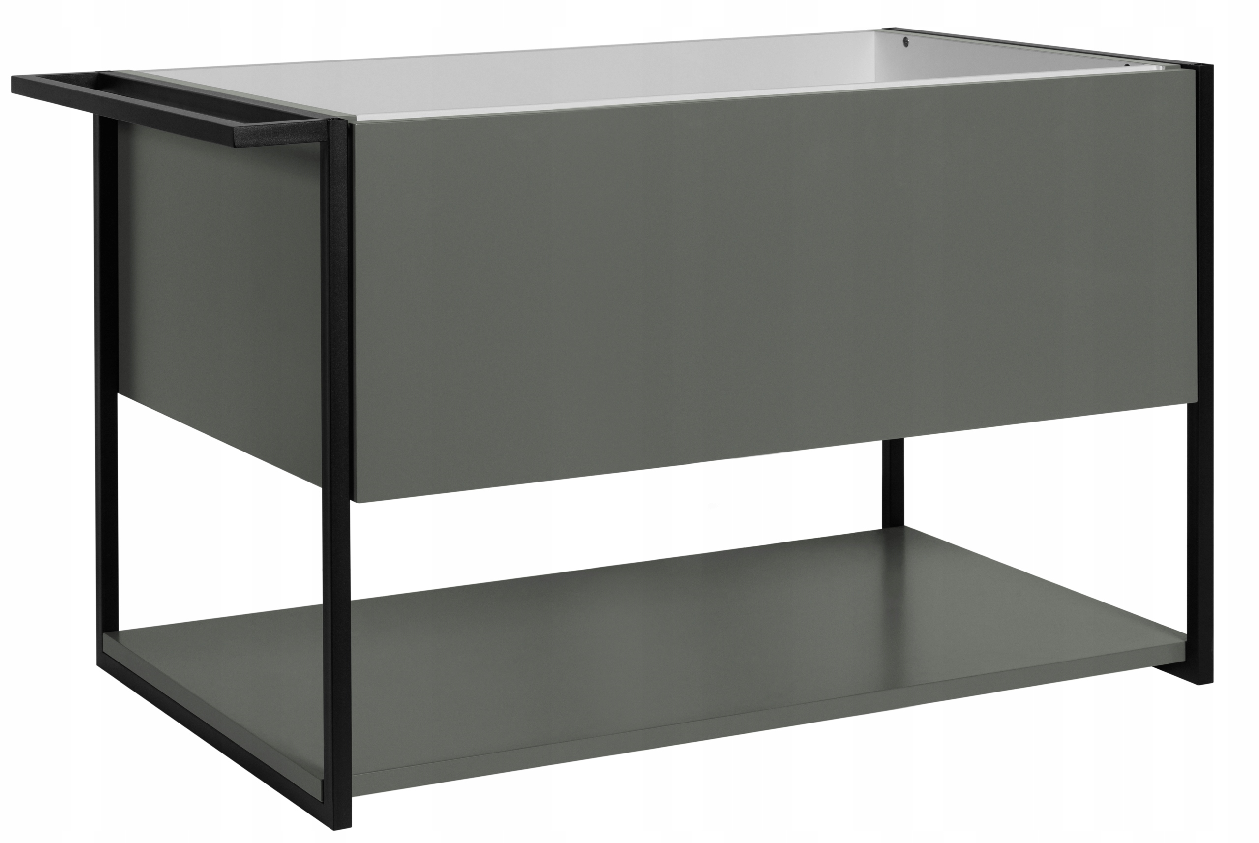 Zielona szafka z kolekcji LOV to nowoczesna propozycja dla osób poszukujących mebli łazienkowych, które łączą minimalistyczną estetykę z industrialnym charakterem. Lakierowane fronty i korpus w półmatowym odcieniu stonowanej zieleni w połączeniu z czarnymi, metalowymi ramami nadają meblowi niepowtarzalny wygląd. Lekka forma wisząca wprowadza wizualny porządek i ułatwia sprzątanie. Szafka o szerokości 80 cm posiada pojemną szufladę z systemem push-to-open, dolną półkę idealną na ręczniki oraz funkcjonalny metalowy wieszak, który można zamontować z dowolnej strony. To doskonały wybór do nowoczesnych wnętrz, w których liczy się zarówno forma, jak i codzienna wygoda.