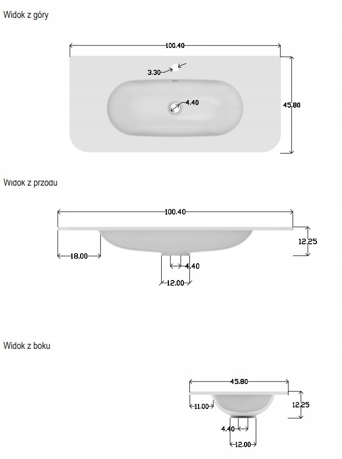 Wymiary: szerokość – 100 cm, wysokość – 5 cm, głębokość – 46 cm