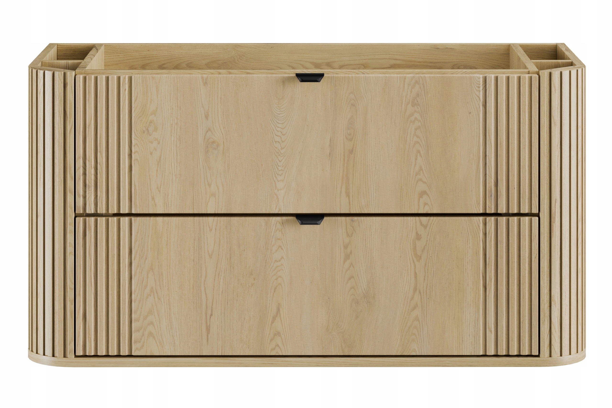 Kolekcja OVALIA CREMONA to nowoczesna linia mebli łazienkowych inspirowana naturalnym drewnem i delikatną geometrią. Szafka o szerokości 100 cm przyciąga wzrok subtelnymi frezowaniami oraz zaokrąglonymi narożnikami, które nadają bryle wyjątkowo miękki, elegancki wygląd. Ciepły dekor dąb Cremona wnosi do wnętrza harmonię i przytulność, a czarne, metalowe uchwyty efektownie kontrastują z kolorem frontów, podkreślając nowoczesny charakter mebla. Dwie przestronne szuflady pozwalają utrzymać porządek w łazience, a system cichego domyku zapewnia komfortowe użytkowanie. Szafka jest przeznaczona do zawieszenia, dzięki czemu prezentuje się lekko i nowocześnie, nie tracąc na funkcjonalności. Wykonana z trwałych i starannie dobranych materiałów, jest doskonałym wyborem do codziennego użytku. Polska produkcja to gwarancja solidności i dbałości o każdy detal.