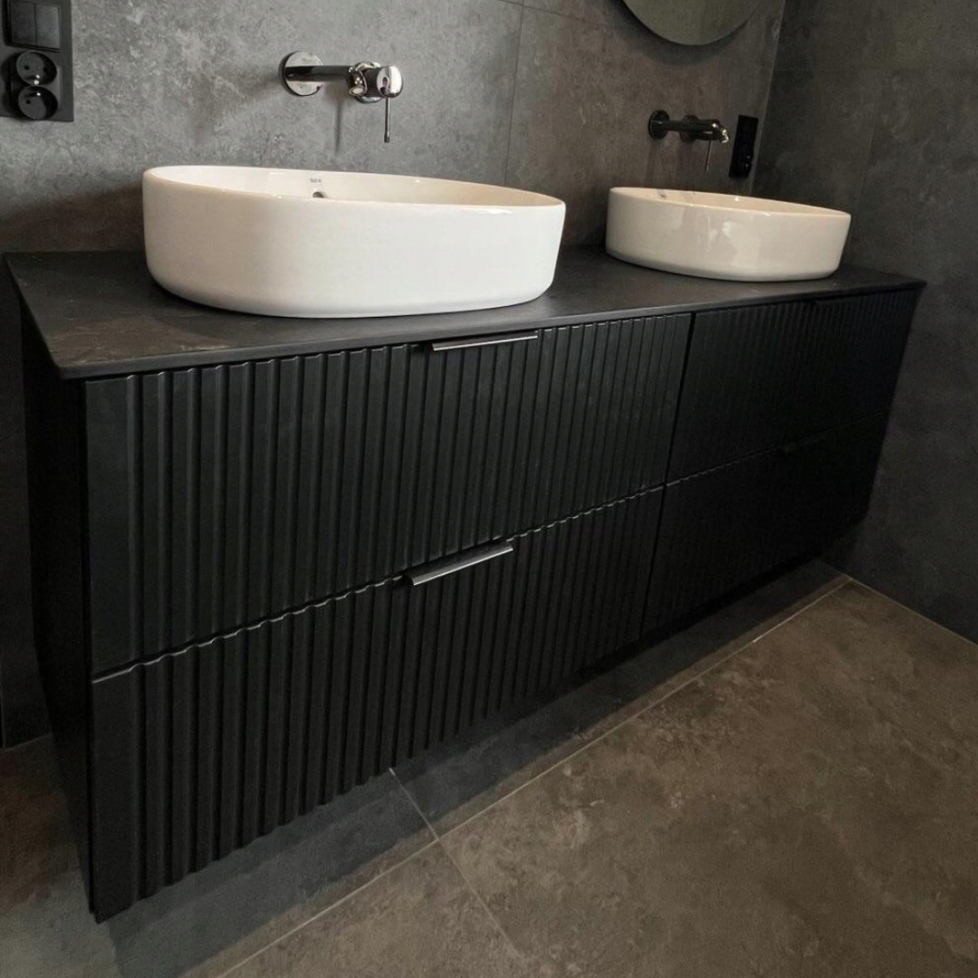 Szafka łazienkowa ADEL BLACK to elegancka propozycja, która łączy nowoczesny design z wysoką funkcjonalnością. Czarny matowy kolor i ryflowane fronty nadają jej wyjątkowy charakter, doskonale komponujący się zarówno w minimalistycznych, jak i klasycznych aranżacjach.