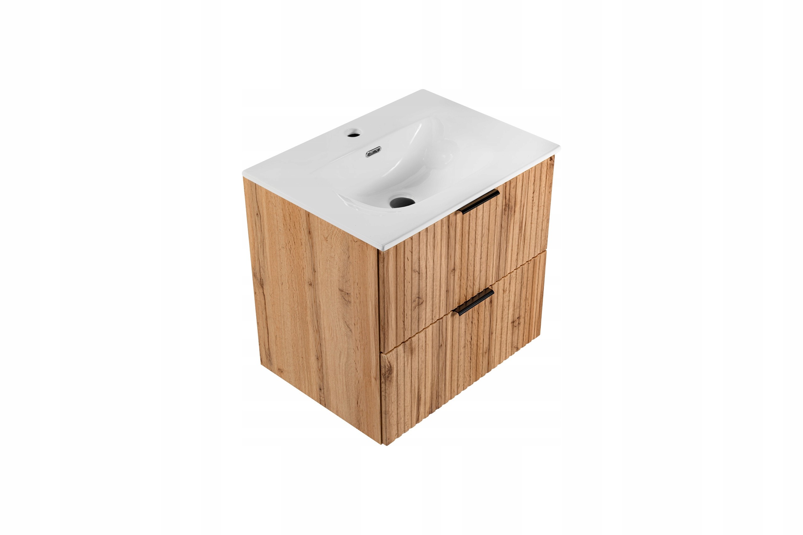Kolekcja ADEL OAK to idealne połączenie nowoczesności i funkcjonalności, które wprowadzi elegancję do każdej łazienki. Szafka łazienkowa, wykonana w wyrazistym kolorze dębu wotan, zachwyca frezowanymi frontami oraz możliwością dopasowania uchwytów w trzech wariantach kolorystycznych: czarnym, złotym i chromowanym. Wiszące szafki z funkcją cichego domyku zapewnią wygodę użytkowania, a ich ryflowane fronty dodadzą stylu. To idealny wybór dla osób ceniących sobie estetykę i komfort na co dzień. Produkt nie zawiera blatu.
