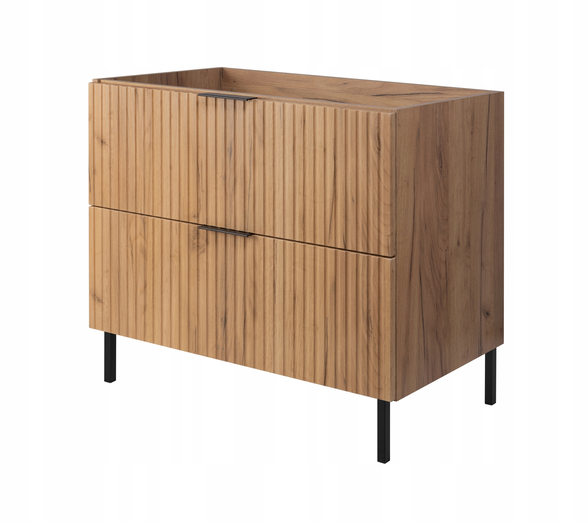 Szafka o szerokości 80 cm wyposażona jest w dwie pojemne szuflady z pełnym wysuwem oraz systemem cichego domyku SOFT CLOSE, co gwarantuje wygodę i komfort codziennego użytkowania. Brak blatu pozwala na indywidualny dobór umywalki i wykończenia zgodnie z własną aranżacją.