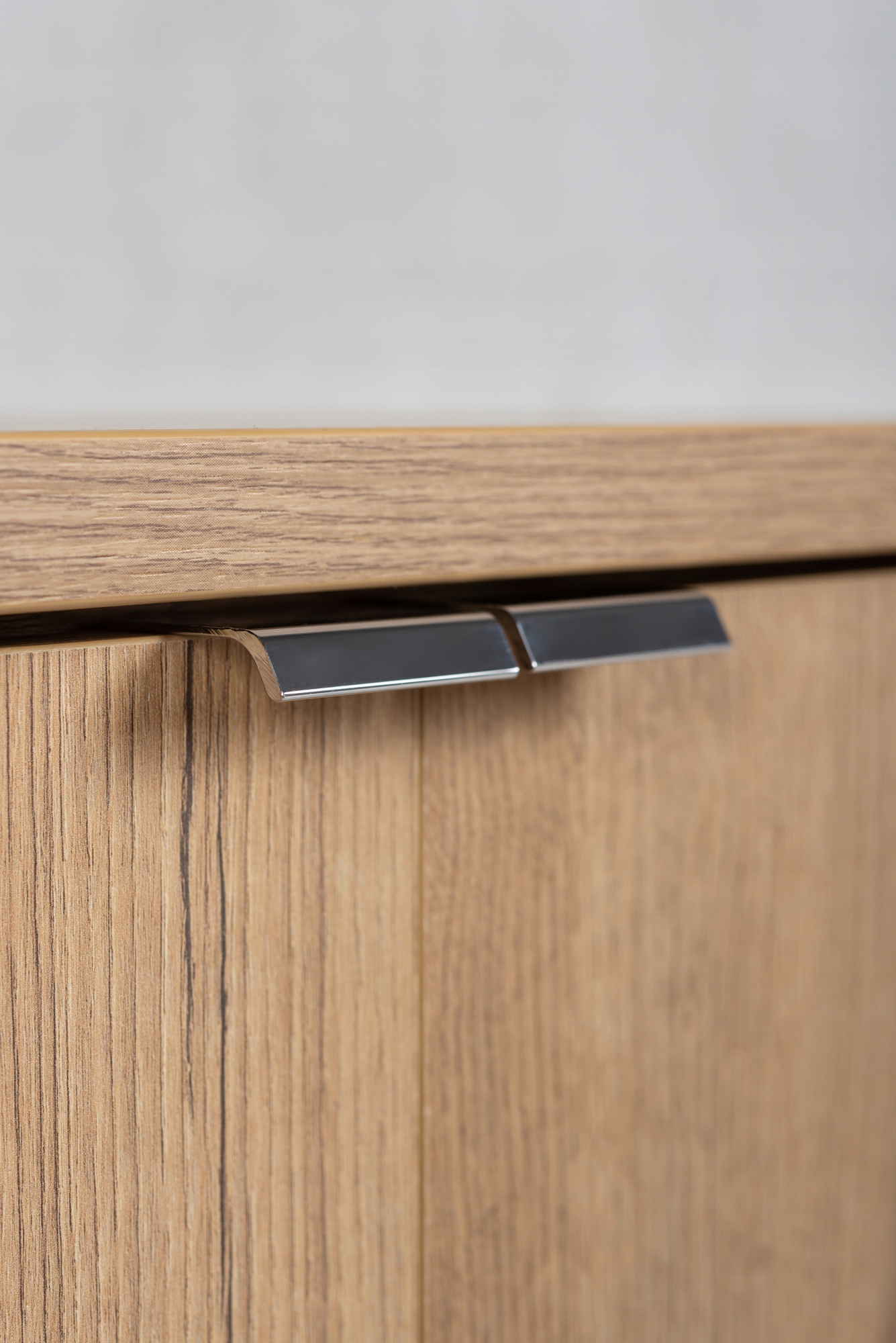 Szafka z kolekcji NOVA OAK zaprojektowana jest z myślą o funkcjonalności i estetyce, z chromowanymi uchwytami krawędziowymi, które nadają jej minimalistyczny wygląd i zapewniają łatwy dostęp. Kolekcja oferuje różne elementy, takie jak szafki pod umywalki, lustra, półki oraz moduły, umożliwiające stworzenie spójnej i funkcjonalnej łazienki.