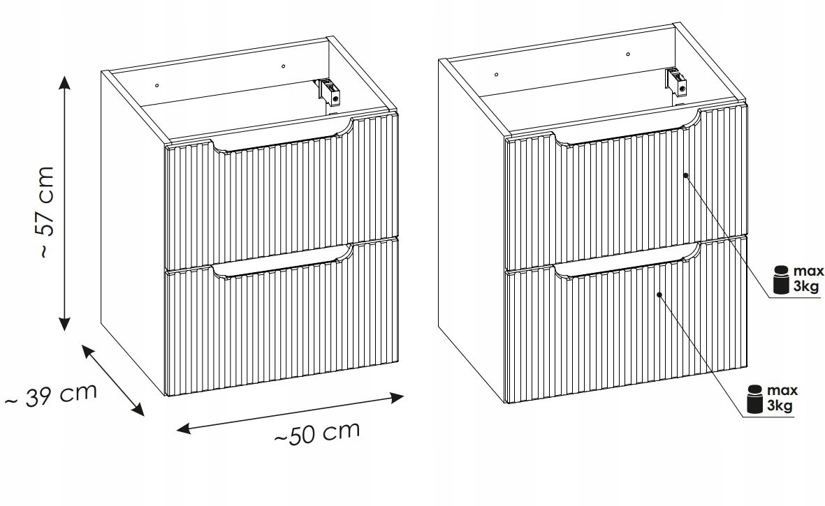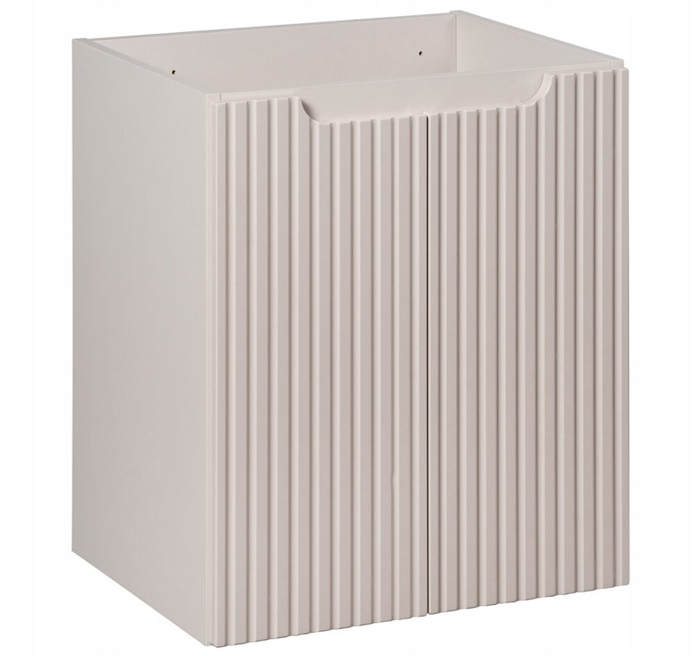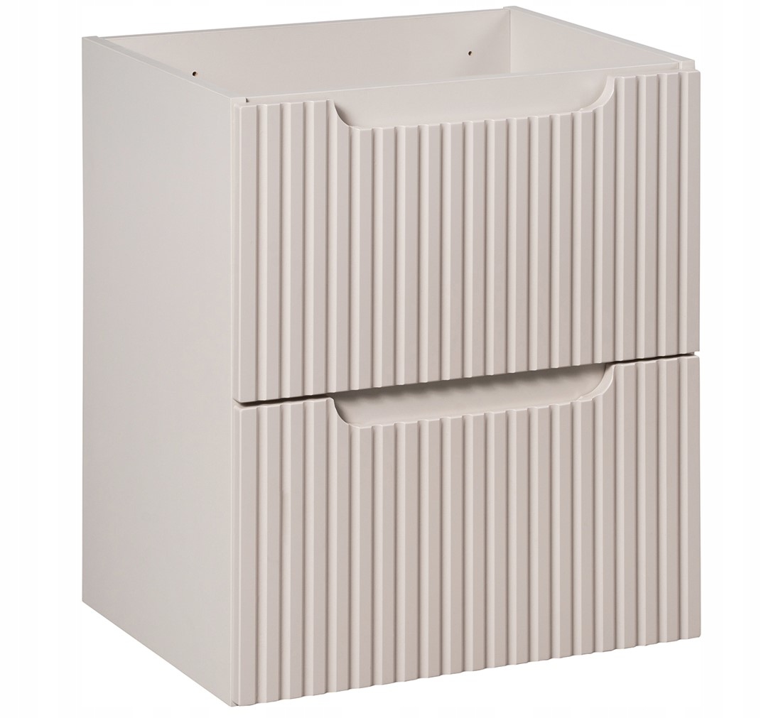 Szafka wisząca pod umywalkę z kolekcji NOVA KASZMIR to doskonałe połączenie elegancji i funkcjonalności, które idealnie dopełni każdą łazienkę. Wykończona w kaszmirowym macie, z ryflowanymi frontami oraz subtelnym frezowanym uchwytem, wnosi do wnętrza nowoczesny styl i wyjątkowy charakter. Dwie pojemne szuflady wyposażone w cichy domyk SOFT CLOSE zapewniają płynność i komfort użytkowania. Kompaktowy, przemyślany design sprawia, że szafka NOVA KASZMIR doskonale sprawdza się zarówno w mniejszych, jak i większych łazienkach, dodając im klasy i funkcjonalności.