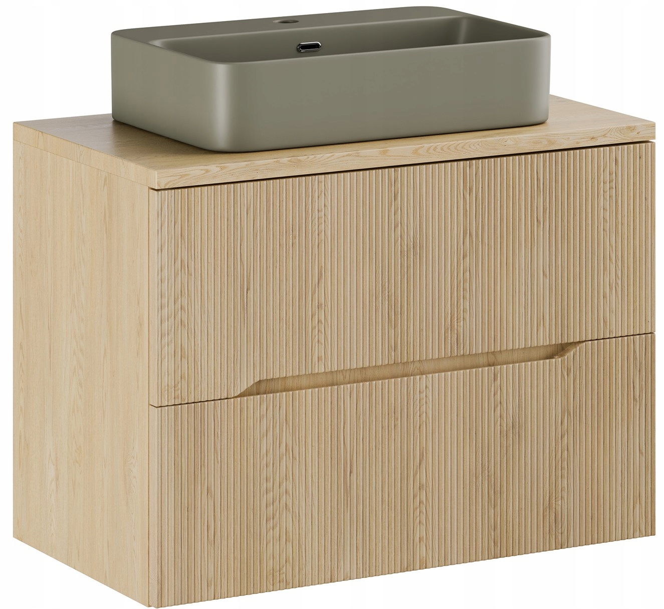 Zintegrowany, asymetryczny uchwyt wkomponowany bezpośrednio w formę frontów to minimalistyczne i praktyczne rozwiązanie, które podkreśla spójność całej linii. Szafki łazienkowe z kolekcji Nordic Cremona mają głębokość 46 cm, dzięki czemu świetnie sprawdzają się nawet w mniejszych pomieszczeniach, oferując zaskakująco dużo miejsca do przechowywania. System cichego domykania podnosi komfort codziennego użytkowania i sprawia, że meble są nie tylko stylowe, ale też wyjątkowo wygodne.