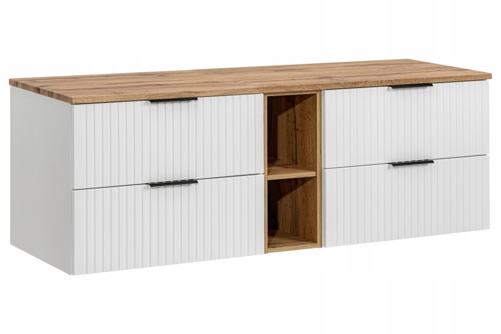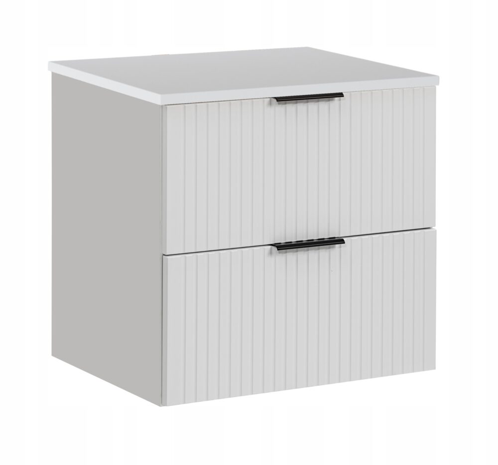 Szafka pod umywalkę z kolekcji ADEL WHITE to idealne rozwiązanie dla osób, które cenią elegancję i funkcjonalność w łazience. Z dwoma pojemnymi szufladami, wyposażonymi w system SOFT CLOSE, oferuje ciche i komfortowe użytkowanie. Jej ryflowane fronty nadają nowoczesny, minimalistyczny styl, który doskonale wpisuje się zarówno w klasyczne, jak i nowoczesne wnętrza. Dzięki możliwości wyboru uchwytów w trzech kolorach (czarny, chrom, złoty), możesz w pełni spersonalizować wygląd szafki, dopasowując ją do swojej aranżacji. Produkt nie zawiera blatu.