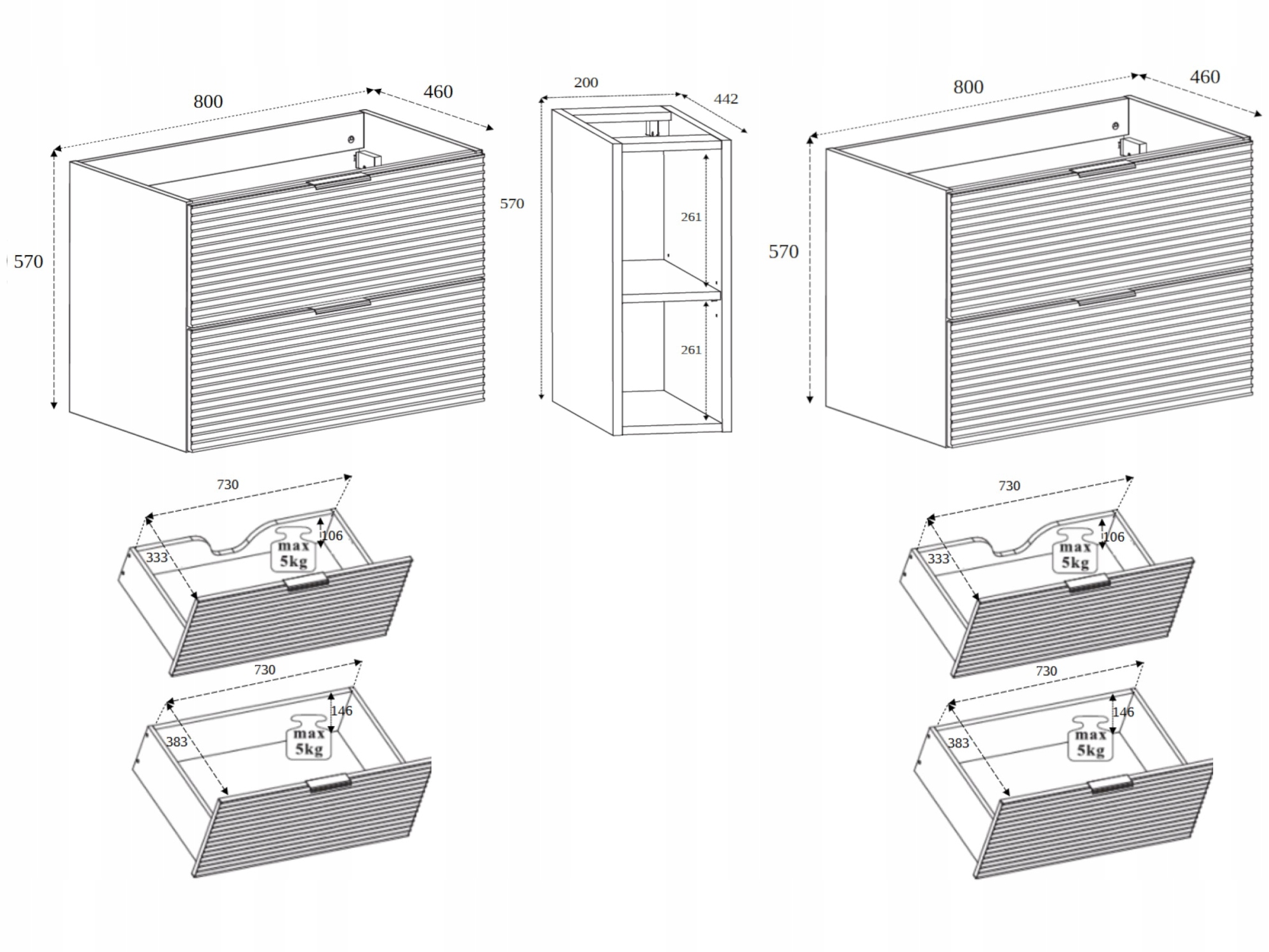 Dodatkowo, metalowe uchwyty w dwóch wariantach kolorystycznych – srebrnym i czarnym – pozwalają na idealne dopasowanie do pozostałych elementów wystroju wnętrza. Szafka wyróżnia się unikalnym designem i funkcjonalnością, co czyni ją idealnym rozwiązaniem do nowoczesnych wnętrz. AURA to kolekcja, która wprowadzi do Twojej łazienki harmonię i styl.