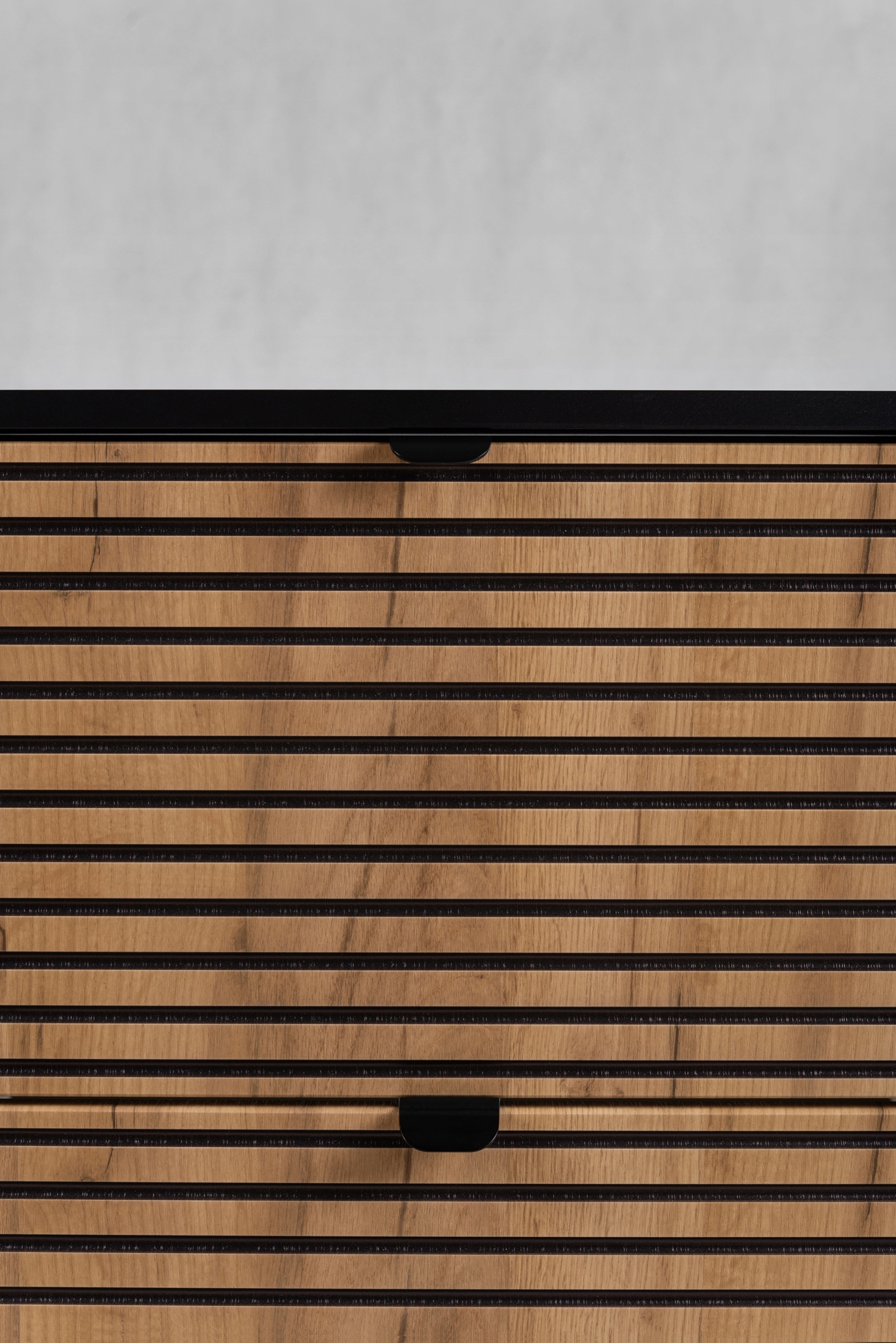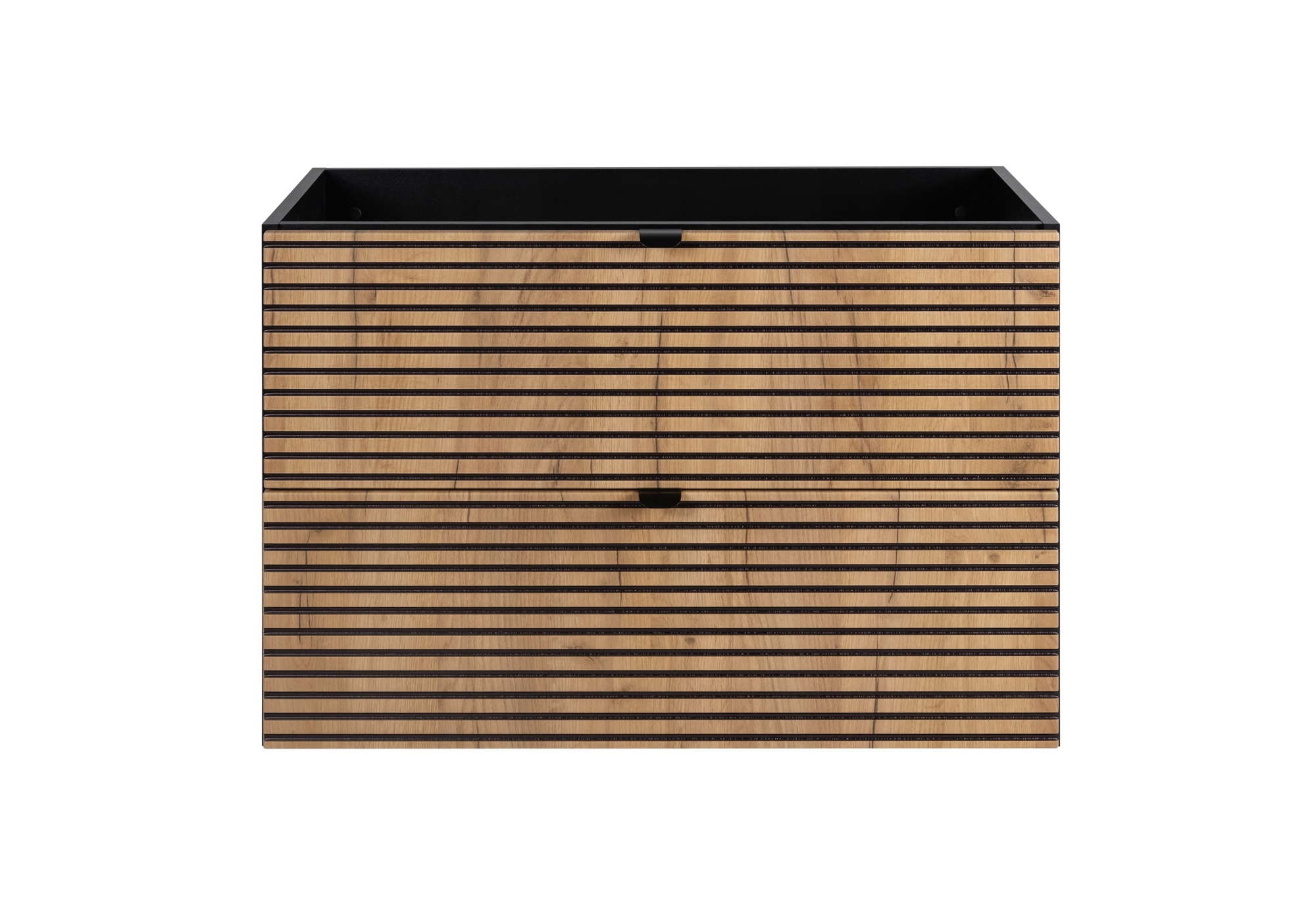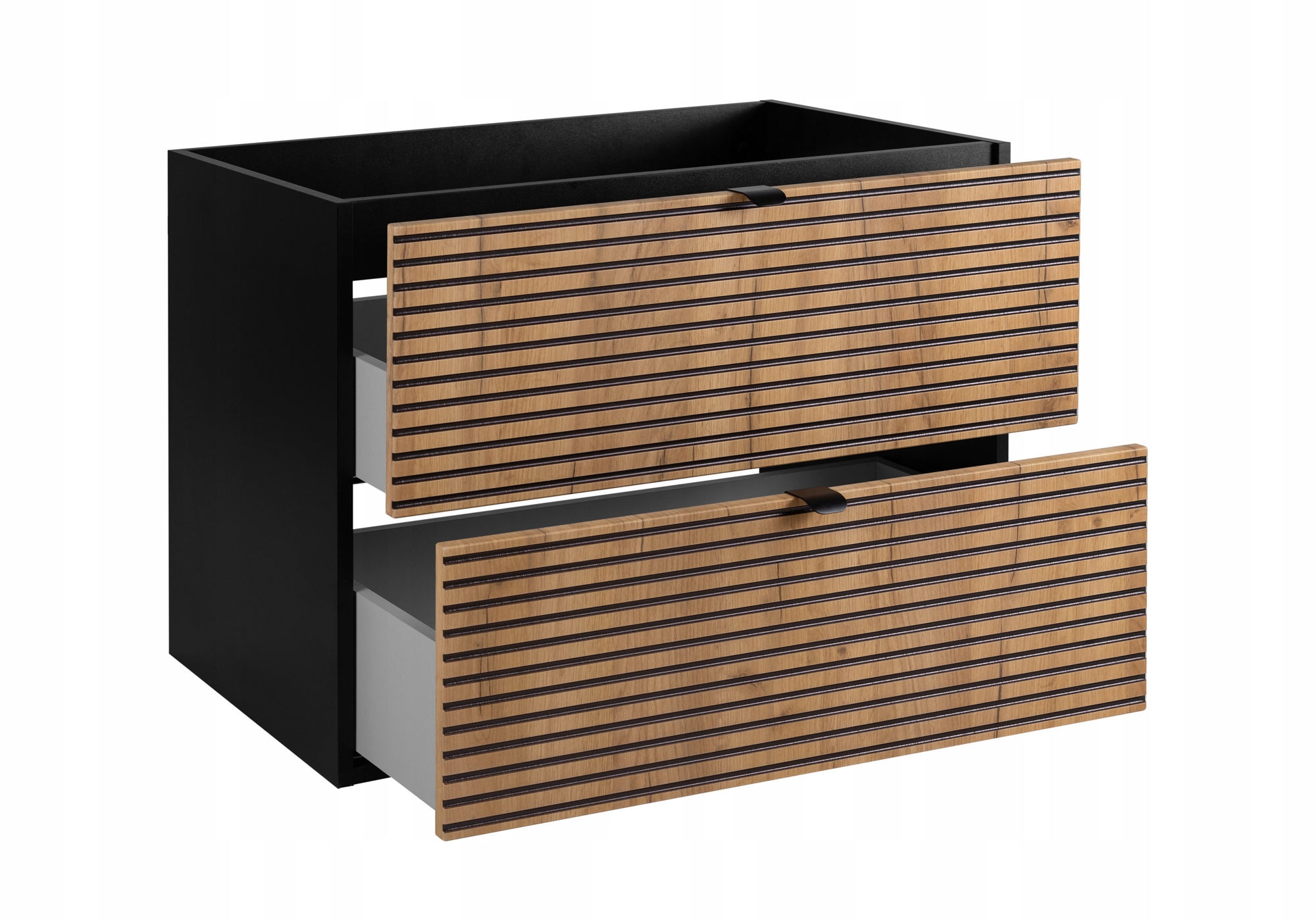 Szafka pod UMYWALKĘ AURA to doskonałe połączenie nowoczesnego designu z funkcjonalnością, które wprowadzi do Twojej łazienki wyjątkowy charakter. Ta wisząca szafka o szerokości 80 cm wyróżnia się eleganckim, czarnym korpusem, który świetnie kontrastuje z frontem w odcieniu dąb craft złoty.