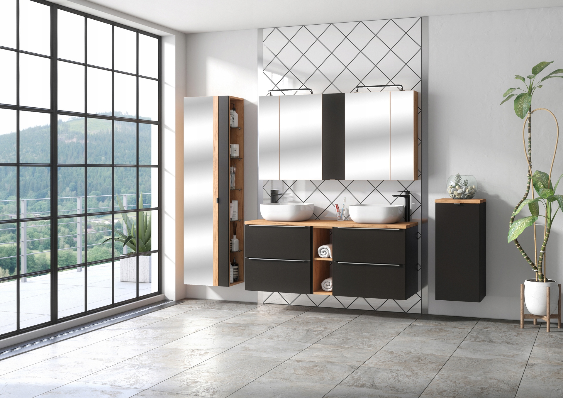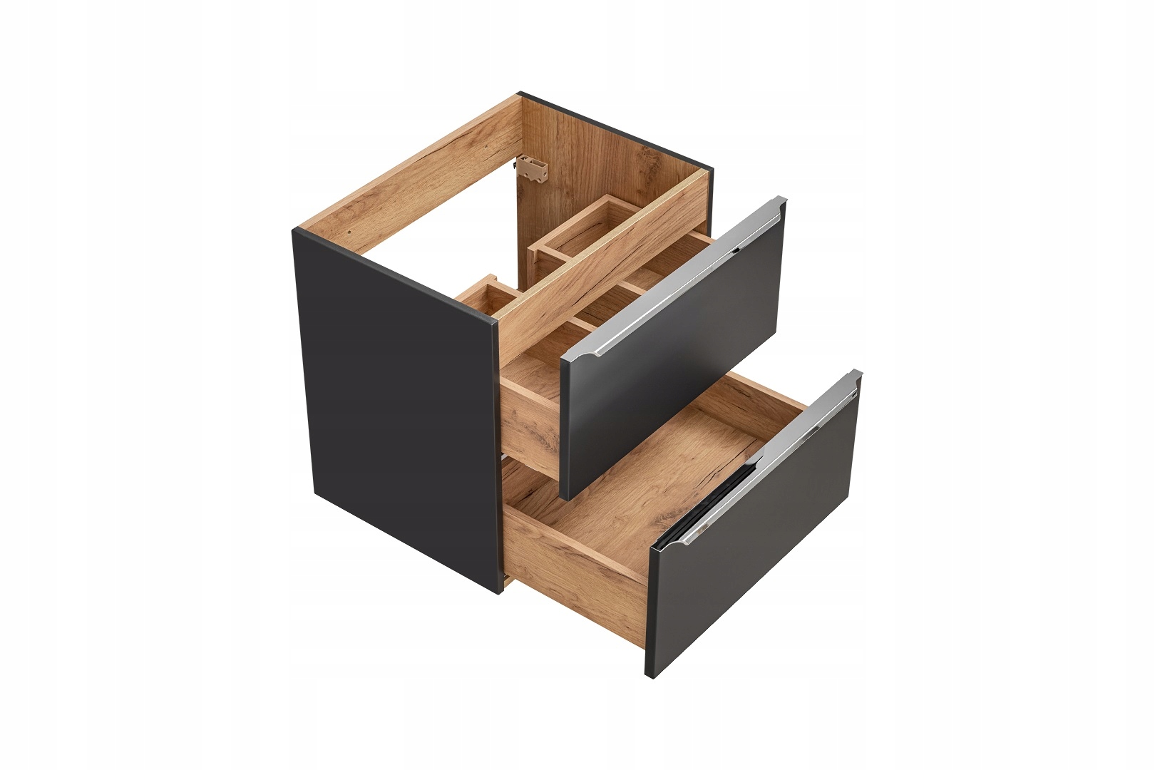 Kolekcja Capri Cosmos to synonim prostoty i elegancji, z metalowymi krawędziowymi uchwytami oraz dębowym wnętrzem, które nadają meblom unikalny charakter. Dwie pojemne szuflady z dociągiem zapewniają wygodny dostęp do wszystkich niezbędnych akcesoriów łazienkowych, a funkcja cichego domyku sprawia, że użytkowanie jest komfortowe i bezpieczne.