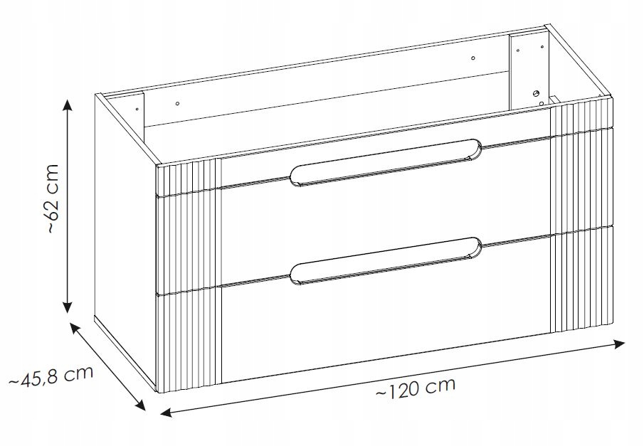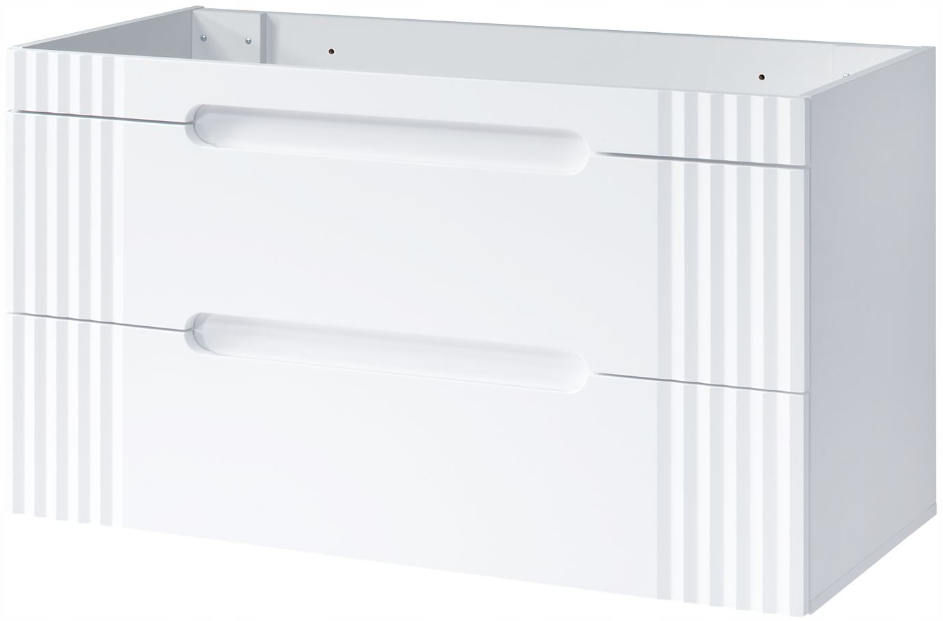 Otwieranie podchwytem oraz eleganckie ryflowane fronty nadają tej szafce minimalistycznego i subtelnego charakteru, wpisując się w najnowsze trendy wnętrzarskie. Dodatkowa możliwość wyboru montażu na ścianie lub na drewnianych nóżkach pozwala na dopasowanie szafki do indywidualnych preferencji oraz stylu łazienki.