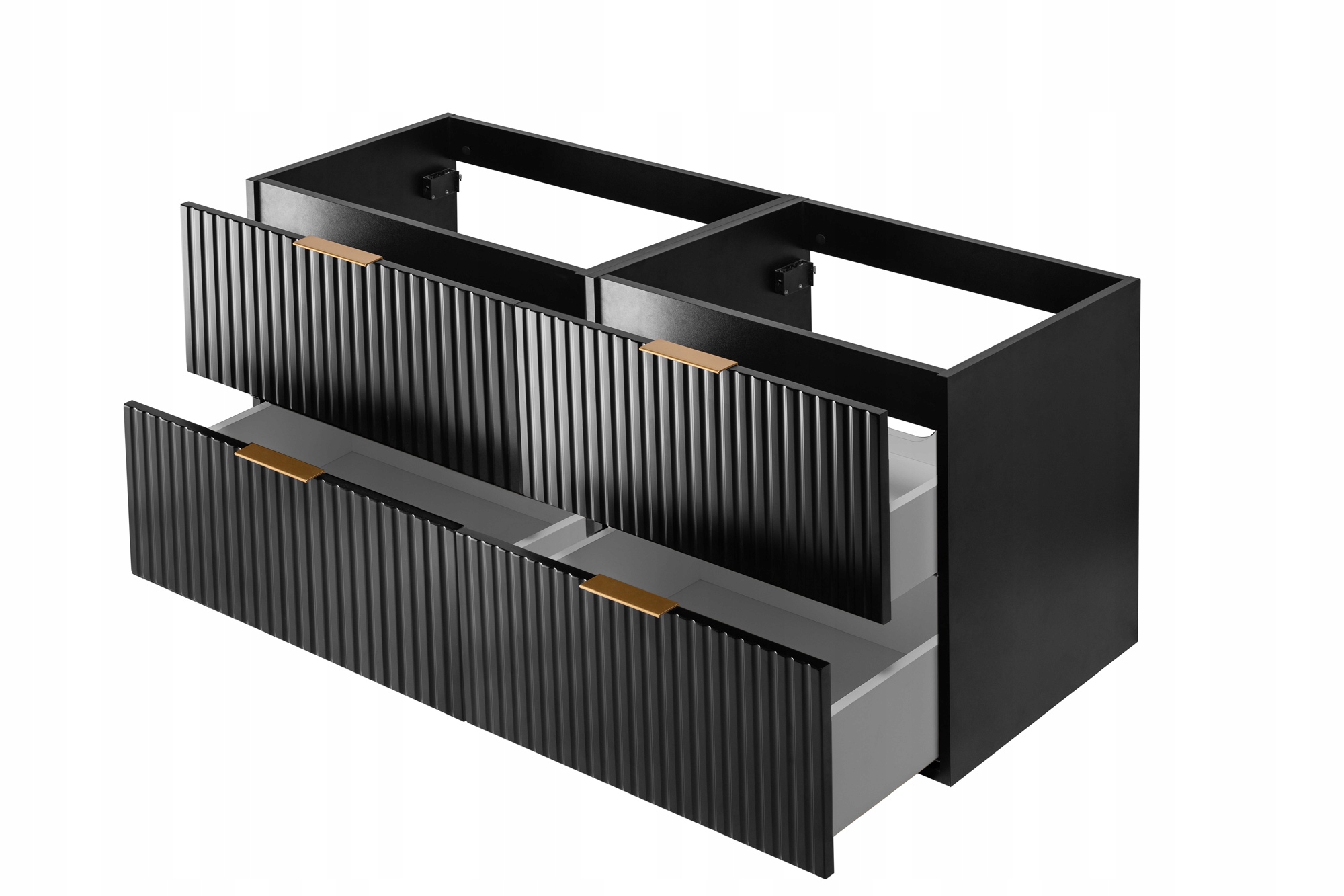 CZARNA WISZĄCA SZAFKA ŁAZIENKOWA POD UMYWALKĘ 120 cm – RYFLOWANA FLOW