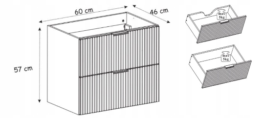 Szafka wyposażona jest w dwie pojemne szuflady z systemem cichego domyku SOFT CLOSE, który gwarantuje płynne i bezgłośne zamykanie oraz wygodę codziennego użytkowania.
