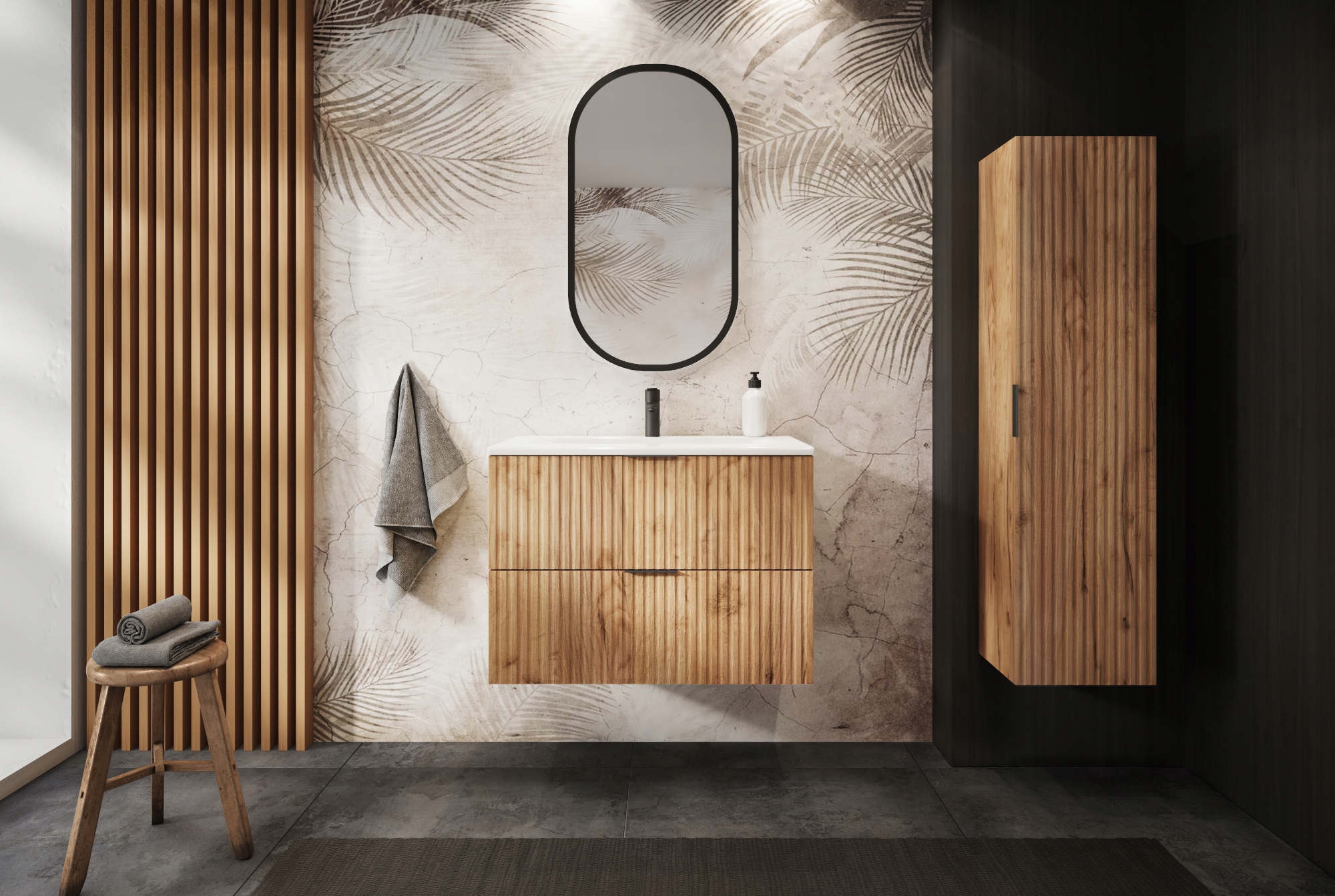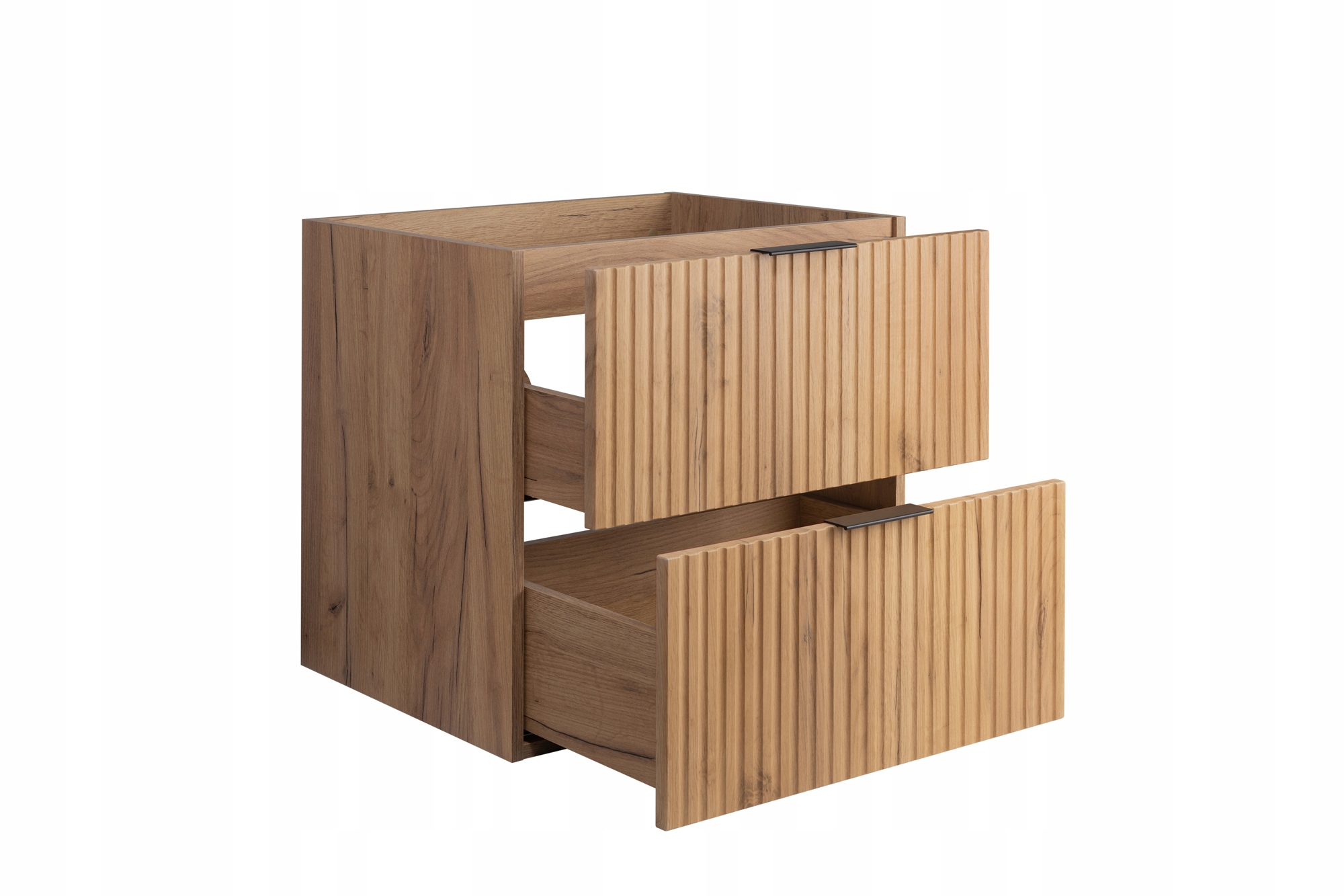 Odkryj wiszącą szafkę łazienkową pod umywalkę FLOW, która łączy elegancję z funkcjonalnością. Jej nowoczesny design oraz ryflowane fronty wykonane z wysokogatunkowej płyty MDF nadają meblowi wyjątkowy charakter, doskonale wpisujący się w nowoczesne aranżacje wnętrz.