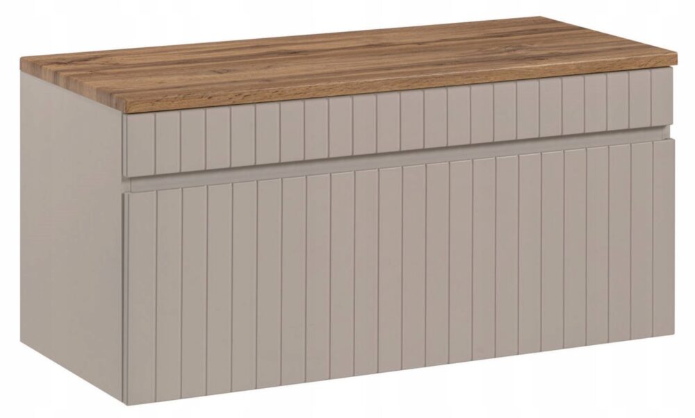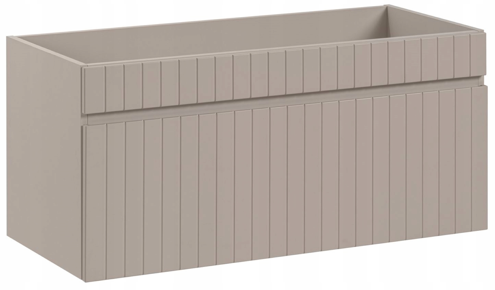 Odkryj elegancję i funkcjonalność z Szafką Łazienkową RYFLOWANĄ w kolorze kaszmirowym o szerokości 100 cm z kolekcji ICONIC. Jej nowoczesny design, wzbogacony o pionowe frezowania, nadaje łazience unikalny charakter, wprowadzając subtelny ruch i płynność do wnętrza.