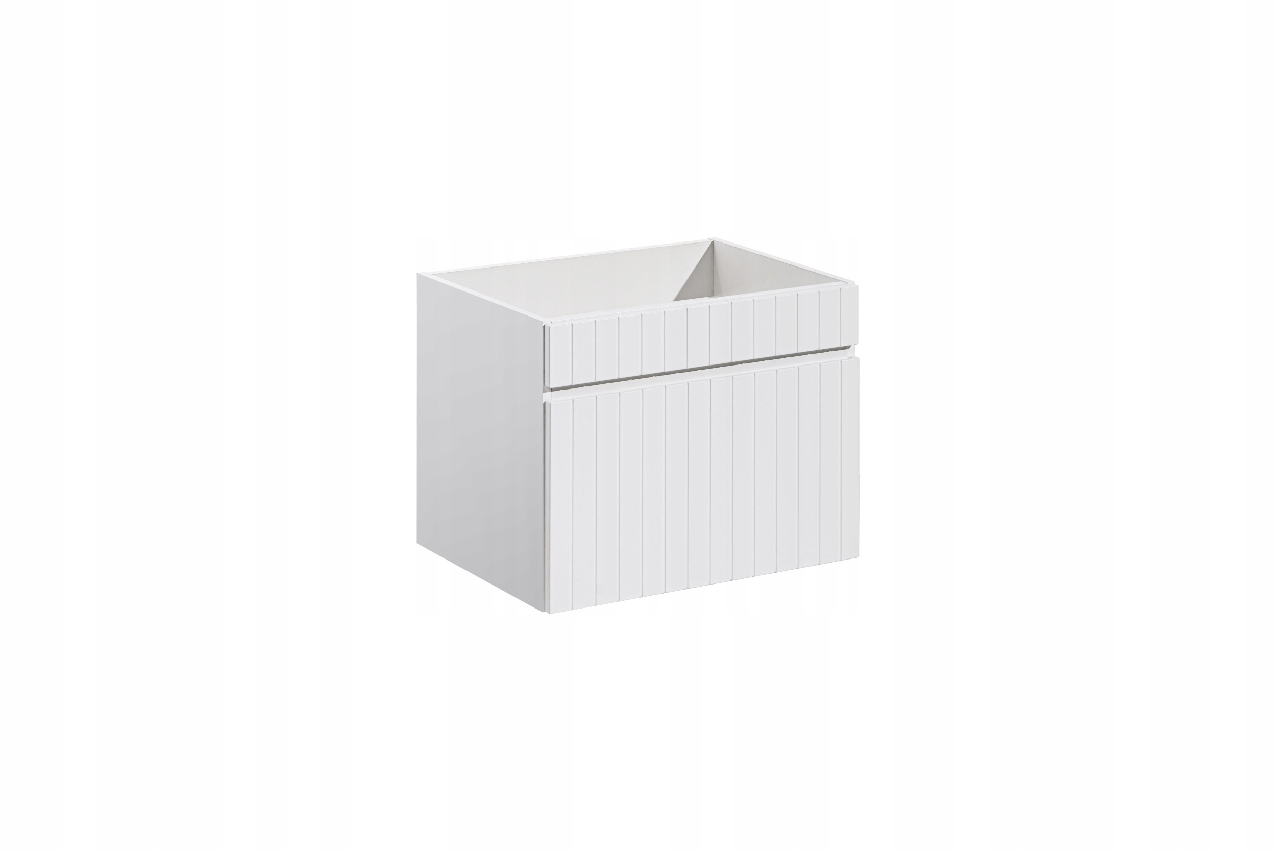 Wyposażona w jedną pojemną szufladę, szafka oferuje doskonałe możliwości przechowywania, a system soft close zapewnia ciche i delikatne zamykanie, eliminując hałas i zwiększając komfort użytkowania. Jej minimalistyczny design i ryflowane fronty wprowadzą subtelny ruch do wnętrza, tworząc wyjątkową atmosferę w Twojej łazience.
