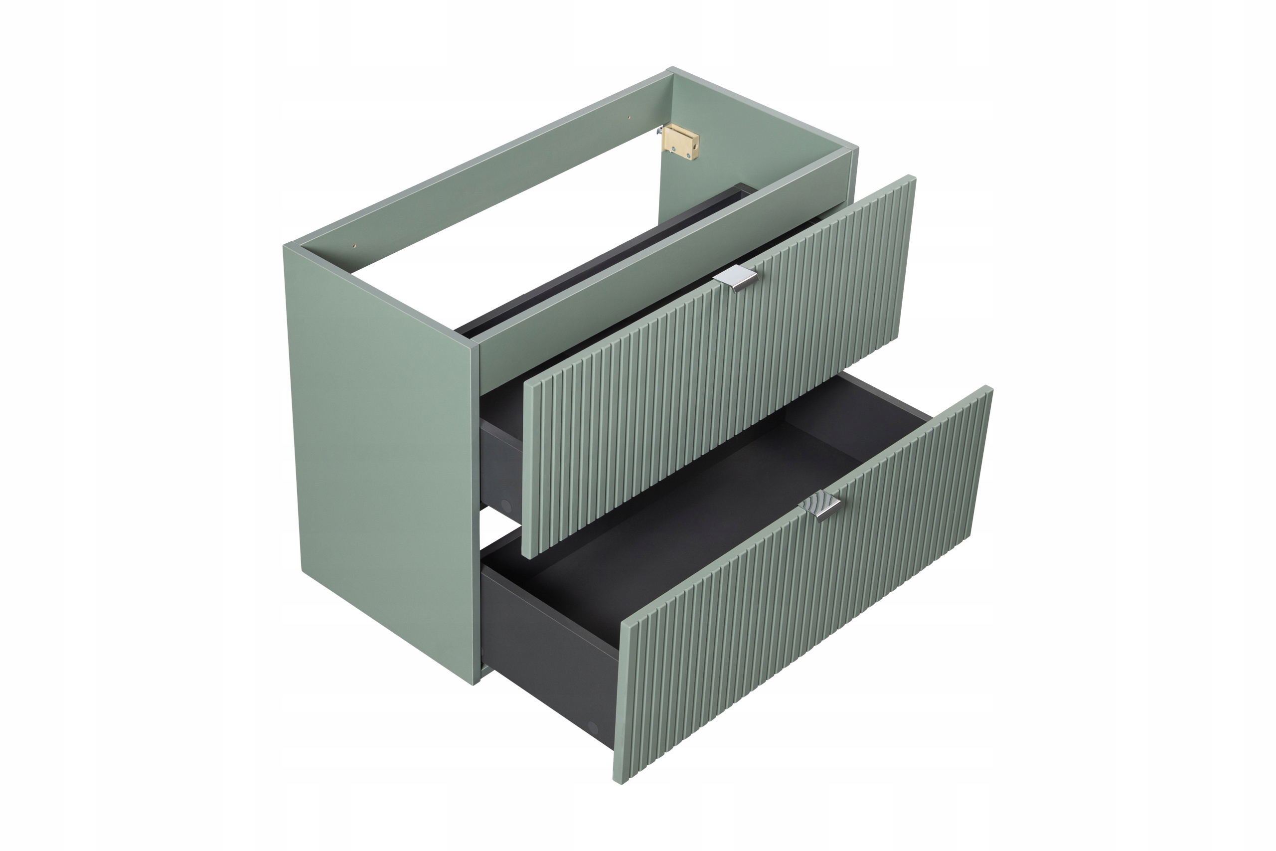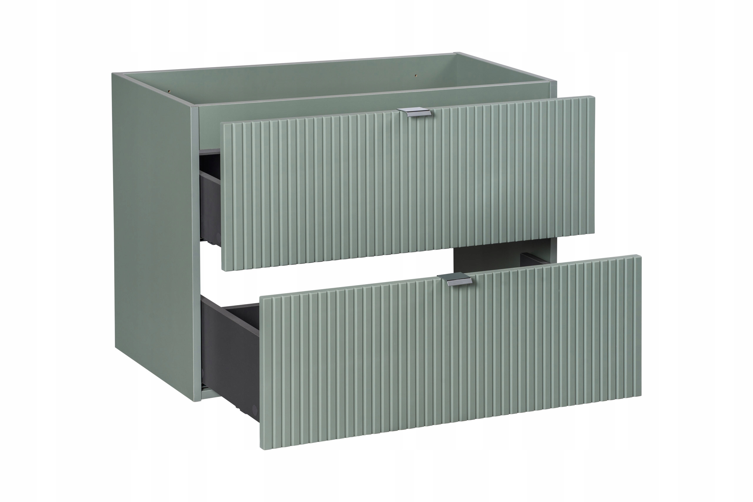 Zielona Szafka pod Umywalkę 80 cm to kwintesencja nowoczesnego designu, która przekształca łazienkę w elegancką przestrzeń. Dzięki ryflowanym frontom, szafka zyskuje subtelne piękno, które wyróżnia ją spośród tradycyjnych rozwiązań. Odcień szałwiowy nadaje wnętrzu przyjemny, relaksujący klimat, który sprzyja chwilom odprężenia.