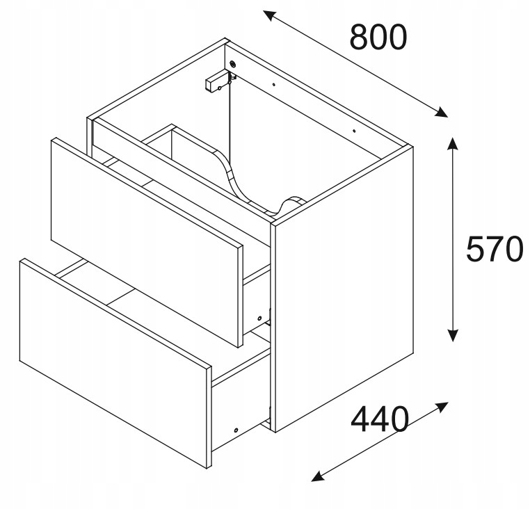 Szafka wyposażona jest w dwie pojemne szuflady z funkcją cichego domyku, co zapewnia komfort użytkowania na co dzień. Kolekcja LUXOR doskonale sprawdzi się zarówno w nowoczesnych, jak i klasycznych aranżacjach, dodając im wyrafinowania i stylu.