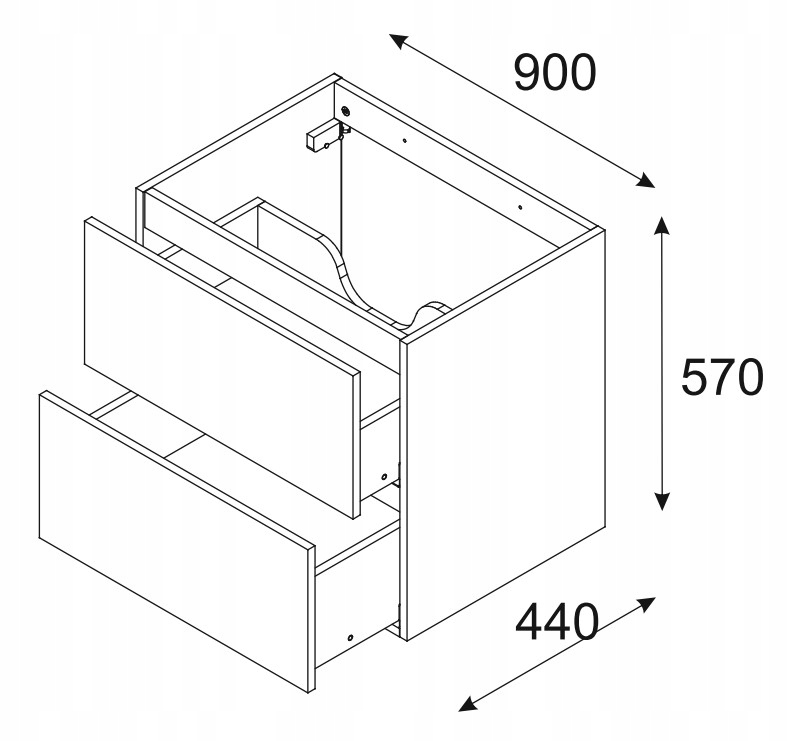 Elegancka i funkcjonalna czarna szafka pod umywalkę LUXOR BLACK o szerokości 90 cm idealnie wpasowuje się w nowoczesne wnętrza łazienki. Dzięki dwóm pojemnym szufladom zapewnia wygodne miejsce na przechowywanie niezbędnych kosmetyków i akcesoriów, zachowując przy tym estetyczny porządek. Trójwymiarowe, czarne fronty o wyjątkowym, geometrycznym wzorze nadają całości głębi oraz unikalnego charakteru, podkreślając luksusowy styl kolekcji LUXOR.