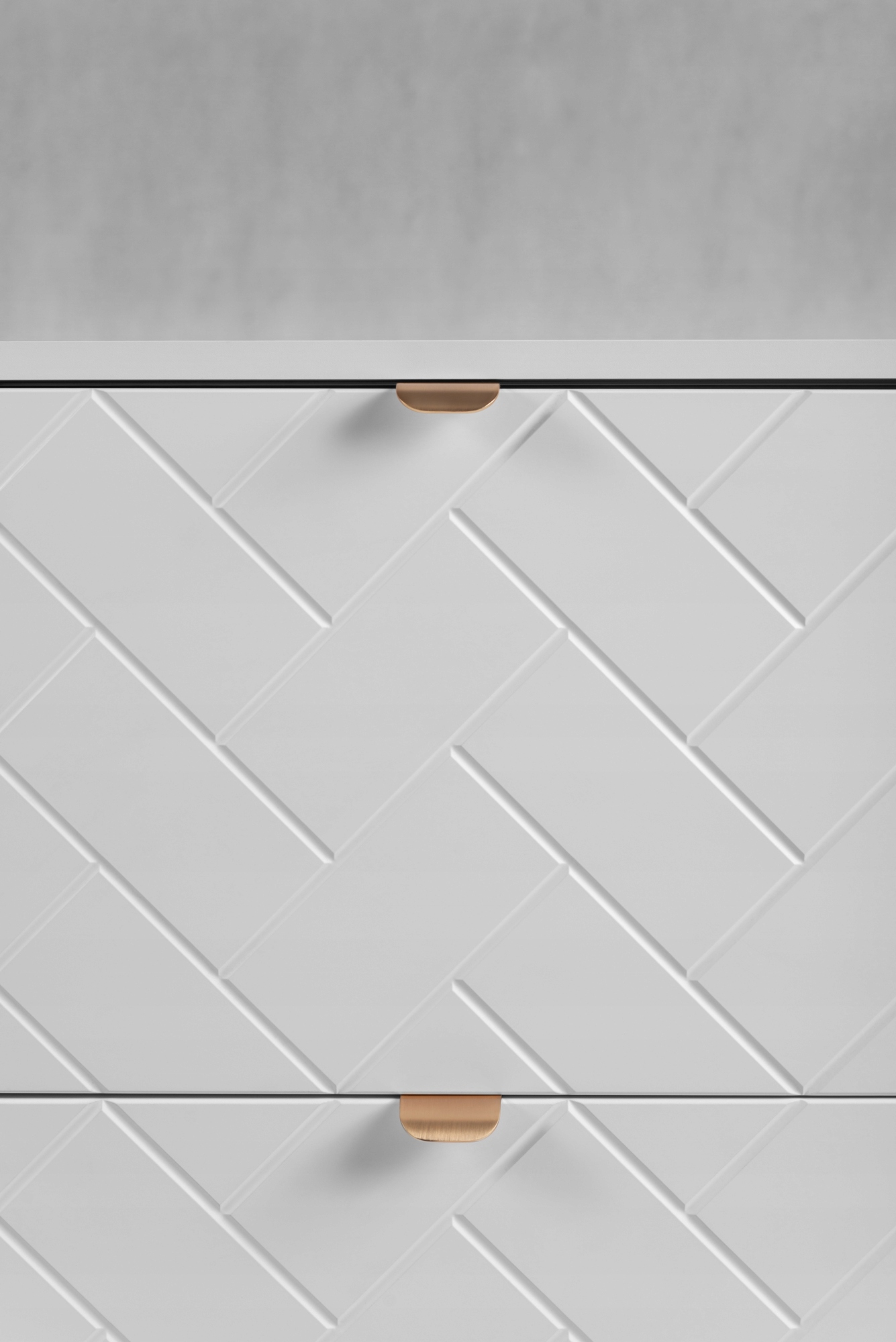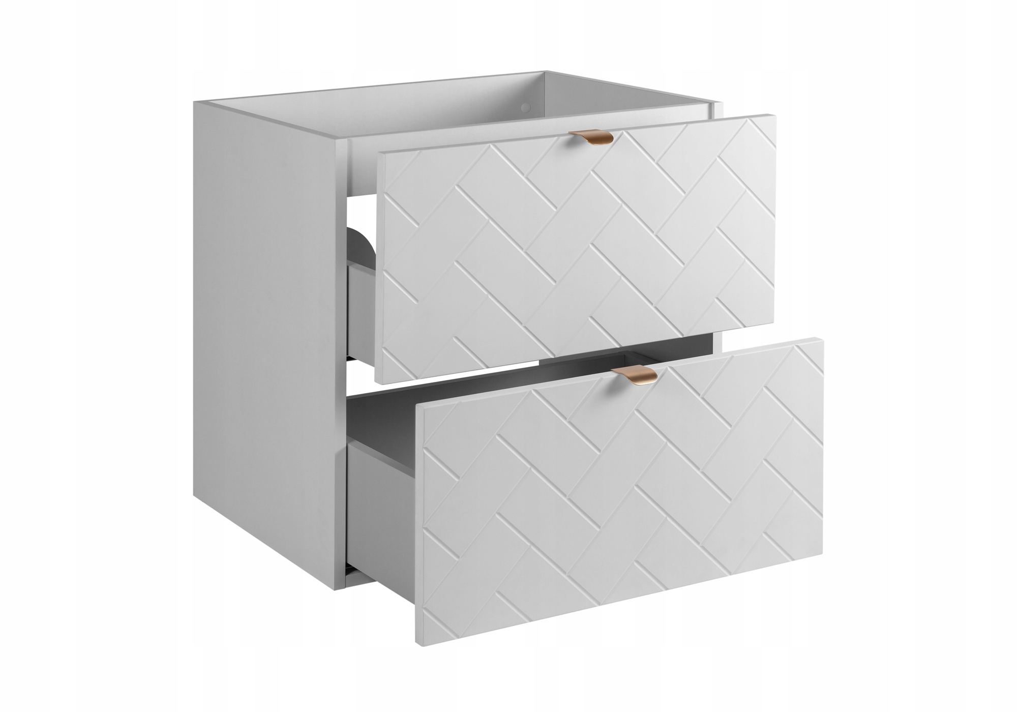 Szafka łazienkowa z kolekcji MADIS łączy w sobie nowoczesny design i funkcjonalność, spełniając oczekiwania nawet najbardziej wymagających użytkowników. Jej subtelny wzór w kształcie jodełki nadaje wnętrzu elegancji, a szeroki wybór kolorów uchwytów (złoty, czarny, srebrny) pozwala na łatwe dopasowanie do różnych stylów aranżacji. Dzięki mechanizmowi cichego domyku, szuflady oferują komfort i wygodę użytkowania, a także ochronę mebli przed uszkodzeniami. Wybierając szafkę z kolekcji MADIS, zyskujesz elegancki i praktyczny element wyposażenia, który doskonale wzbogaci Twoją łazienkę.