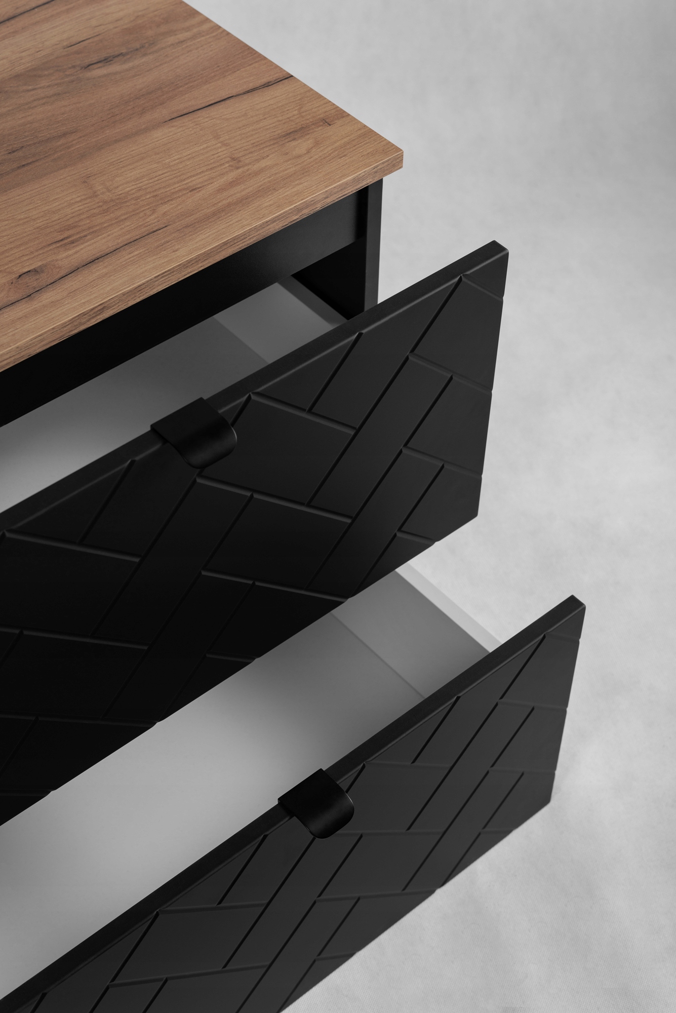 Szafka łazienkowa z kolekcji MADIS to doskonałe połączenie stylu i funkcjonalności, idealnie komponujące się w nowoczesnych wnętrzach. Jej elegancki wzór w kształcie jodełki nadaje unikalny charakter, podkreślając estetykę łazienki. Dzięki możliwości wyboru koloru uchwytów (złoty, czarny, srebrny), mebel można łatwo dopasować do różnych aranżacji. Mechanizm cichego domyku zapewnia komfort i dbałość o trwałość mebli. Wybierając szafkę z kolekcji MADIS, stawiasz na elegancki design i wysoką jakość wykonania, które spełnią oczekiwania każdego miłośnika nowoczesnych i praktycznych rozwiązań.