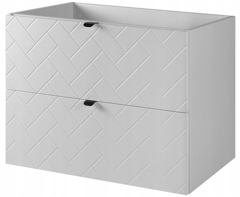 Oto Szafka Łazienkowa MADIS o szerokości 80 cm, która łączy w sobie elegancki design oraz praktyczność. Wyróżnia ją subtelny wzór jodełki, nadający meblom unikalny charakter.