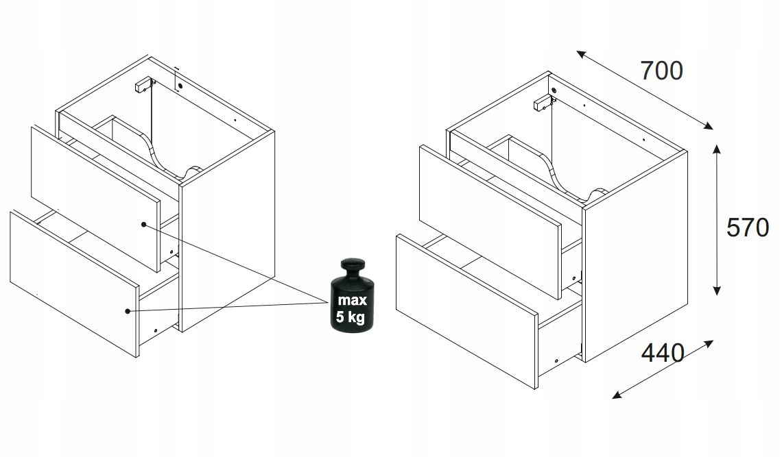 CZARNA Szafka pod Umywalkę 70 cm DĄB Wisząca z FRONTAMI 3D i 2 SZUFLADAMI