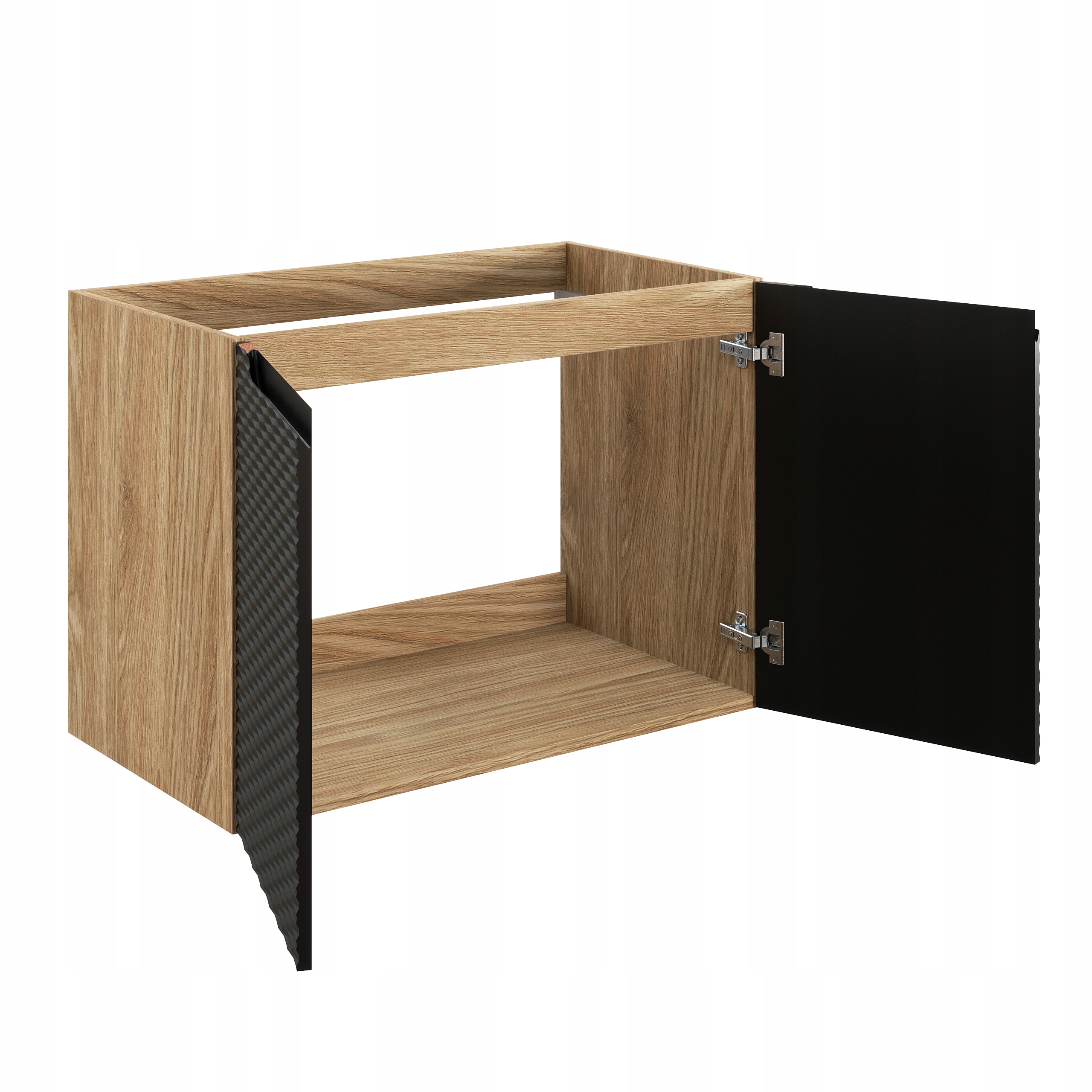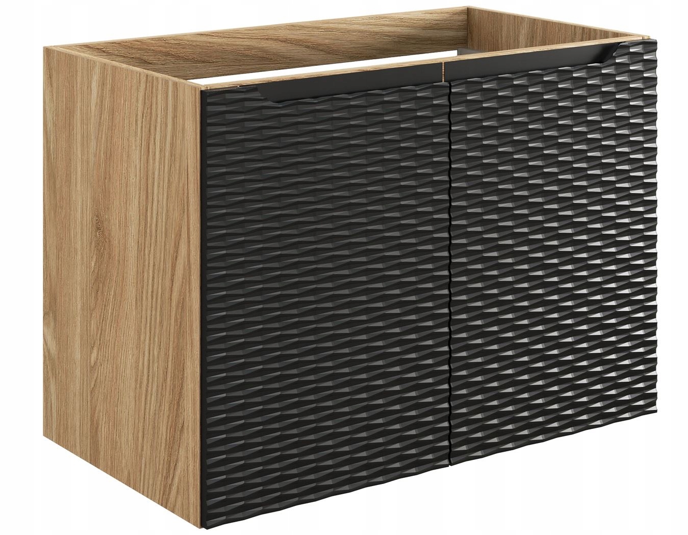 CZARNA Szafka pod Umywalkę 80 cm DĄB Wisząca z FRONTAMI 3D