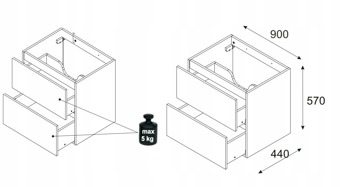 BEŻOWA Szafka pod Umywalkę OCEAN 90 cm z Frontem 3D, Wisząca z 2 Szufladami