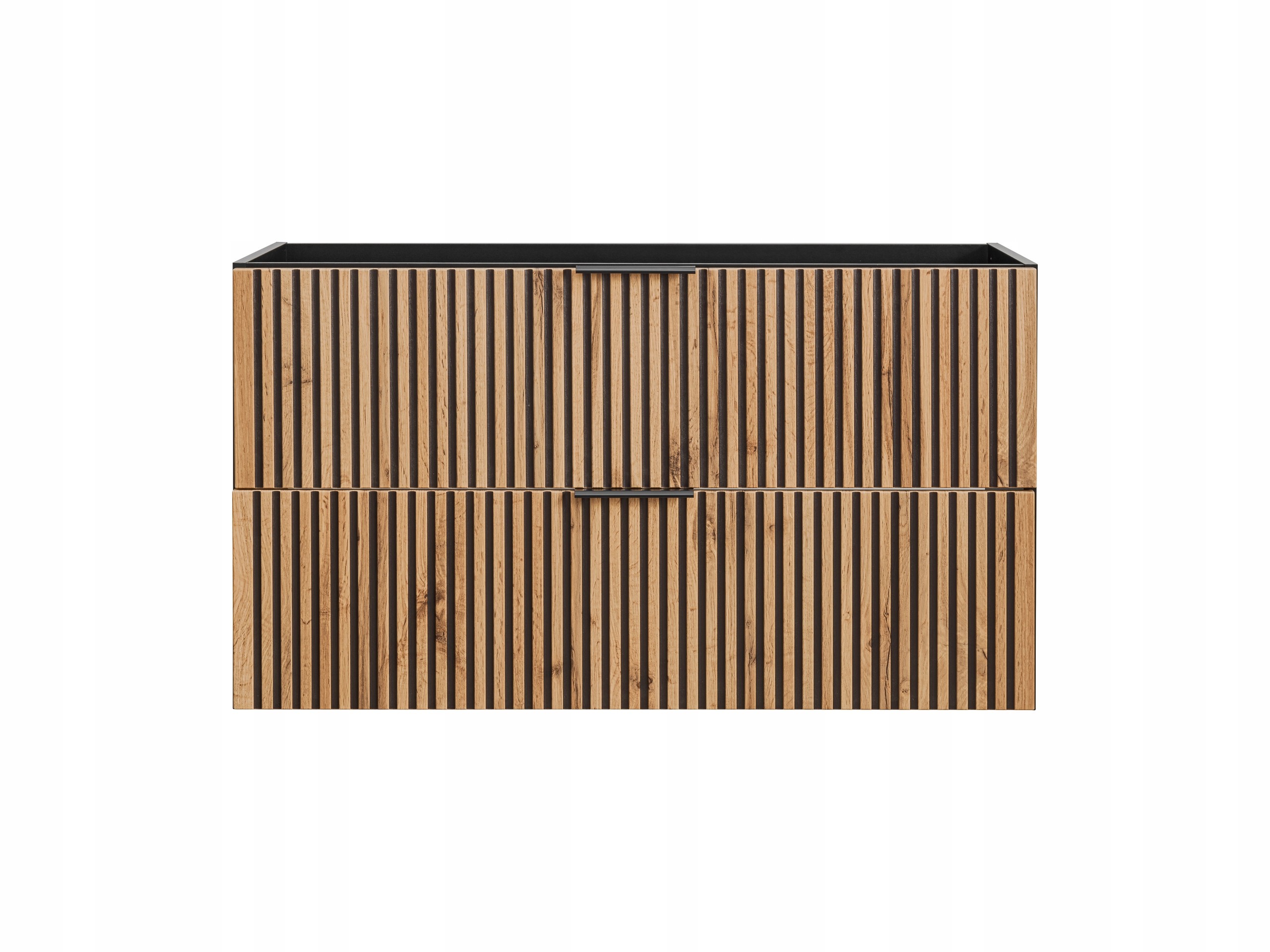 KOLEKCJA XILO wyróżnia się wyjątkowym połączeniem wyrazistych słojów Dębu Wotan i eleganckiego czarnego ryflowania, nadając łazience nowoczesny i przytulny klimat. Czarna wisząca szafka łazienkowa to stylowa propozycja dla wnętrz o wyrafinowanym charakterze, oferująca funkcjonalność i estetykę w jednym.