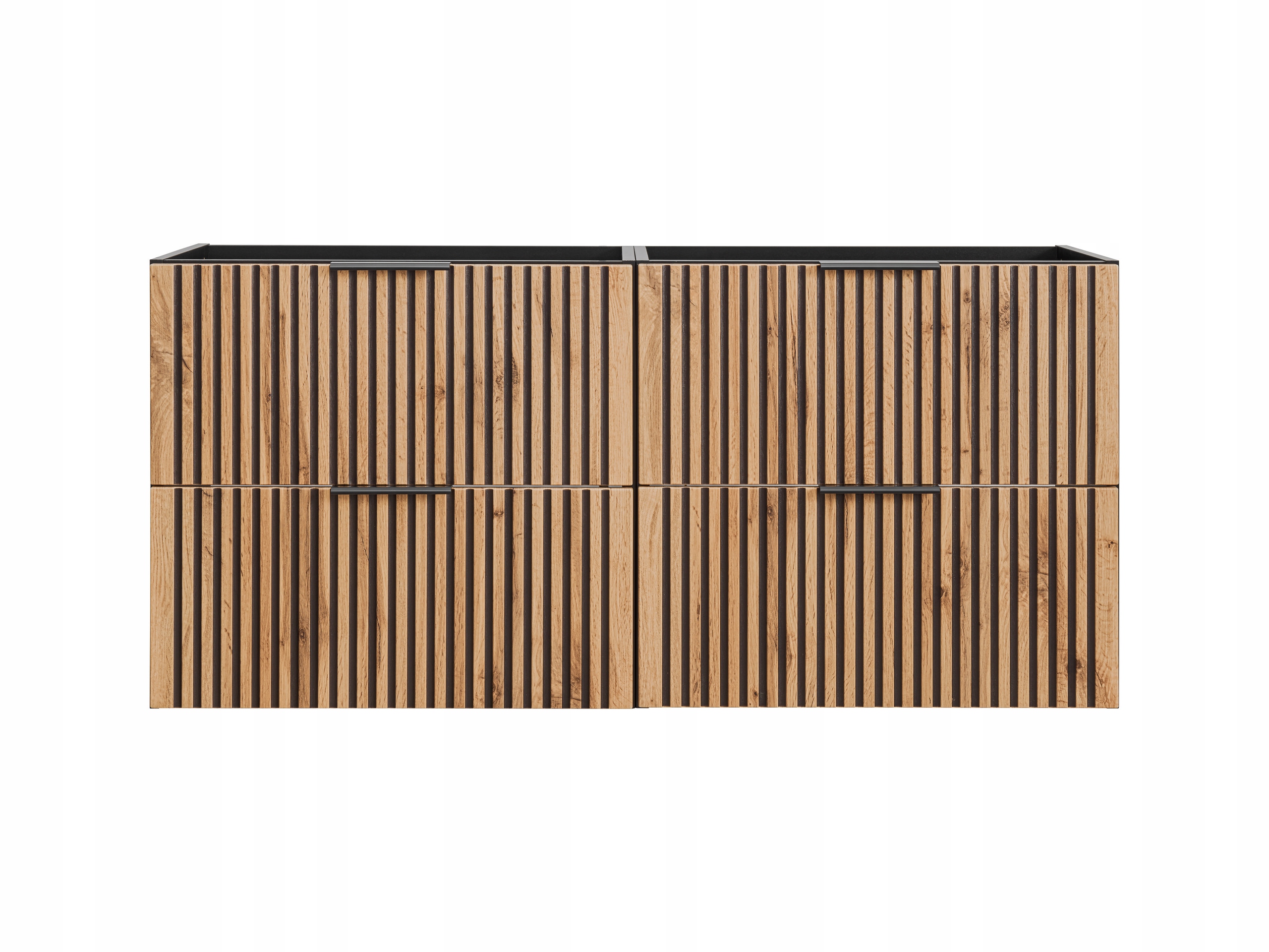 WISZĄCA Szafka do Łazienki CZARNA pod UMYWALKĘ 160 cm z Ryflowanymi Frontami w kolorze Dąb