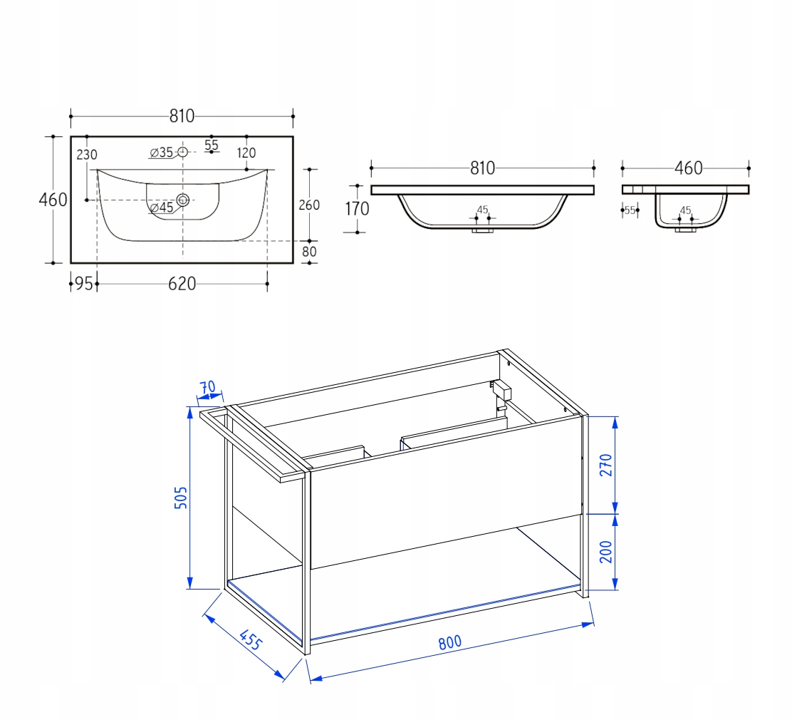 Szafka pod umywalkę LOV o szerokości osiemdziesięciu centymetrów w zielonym półmacie z białą ceramiczną umywalką wpuszczaną to propozycja dla osób ceniących industrialny styl i wygodę codziennego użytkowania. Lakierowane fronty i korpus w stonowanym, zielonym odcieniu świetnie komponują się z czarnymi, metalowymi akcentami – ramą boczną oraz wieszakiem. Mebel posiada lekką, wiszącą konstrukcję, która ułatwia sprzątanie i wizualnie powiększa przestrzeń. Dwie pojemne szuflady bezuchwytowe otwierają się za pomocą systemu push-to-open, a wewnętrzne organizery pomagają utrzymać porządek. Otwarta półka dolna pozwala wyeksponować ręczniki lub dodatki dekoracyjne, podkreślając nowoczesny charakter wnętrza. Blat szafki został dopasowany do wpuszczanej umywalki w kolorze białym z połyskiem, która wyróżnia się trwałością i łatwością czyszczenia. Zastosowanie prowadnic Hettich Quadro gwarantuje płynny i cichy wysuw. Uniwersalny wieszak może być zamontowany po lewej lub prawej stronie, w zależności od potrzeb. Meble są przeznaczone do samodzielnego montażu i zostały wyprodukowane w Polsce.