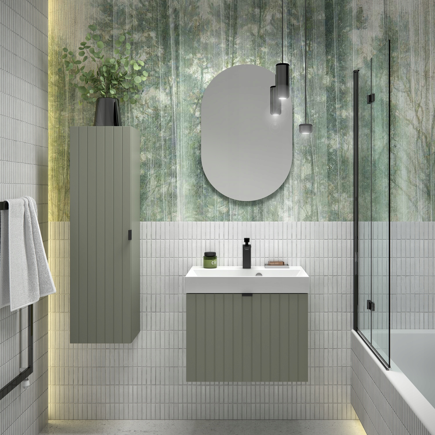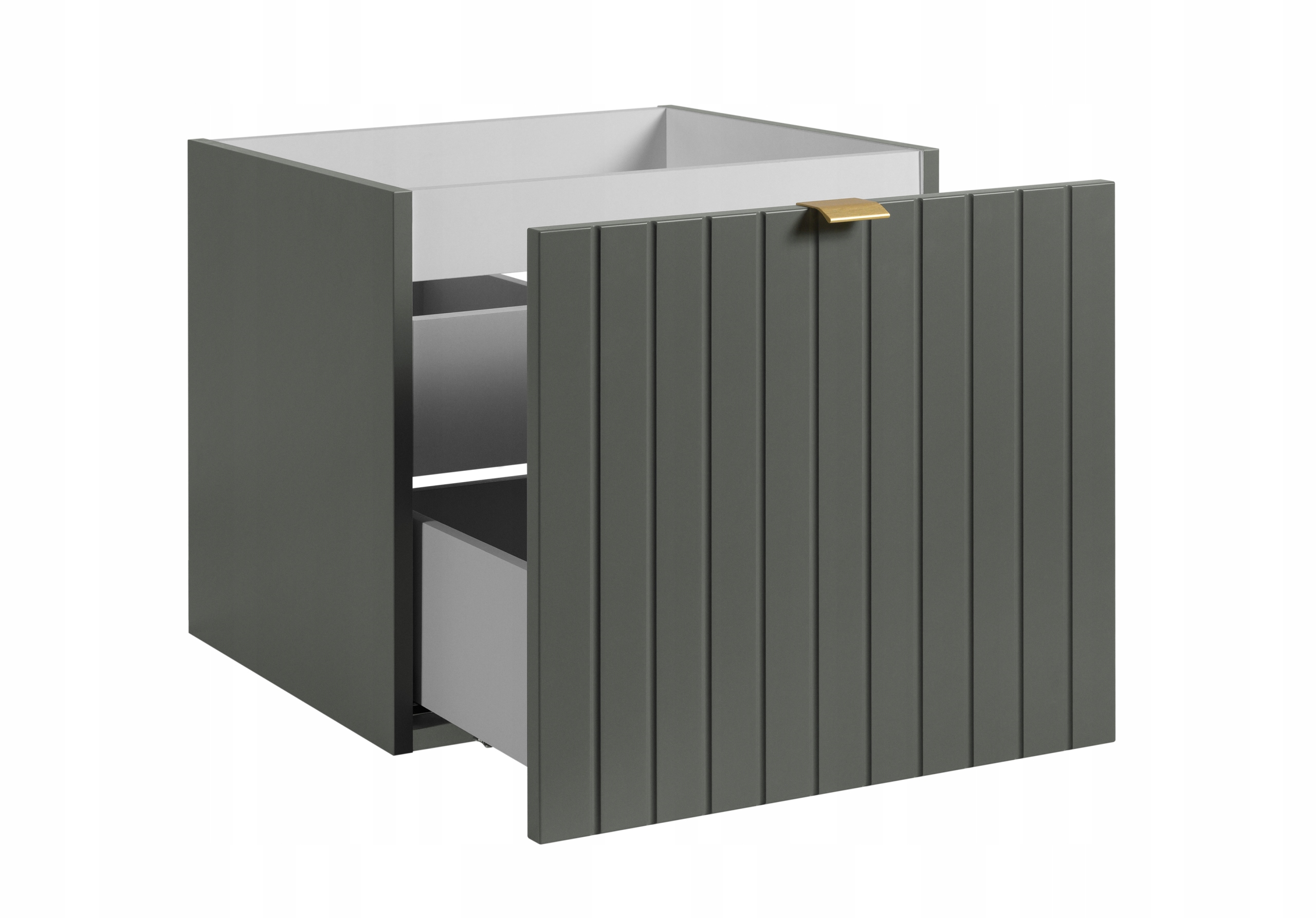 Kolekcja mebli łazienkowych HARMO to harmonijne połączenie elegancji i funkcjonalności, które doskonale wpisuje się w aranżacje nowoczesnych łazienek. Fronty szafki w kolorze zielonego półmatu zostały wykonane z wysokiej jakości płyty MDF z subtelnym, pionowym frezowaniem, podkreślającym nowoczesny charakter mebla. Całość została wykończona trwałym lakierem, który nie tylko nadaje powierzchni eleganckiego wyglądu, ale także zwiększa jej odporność na wilgoć i codzienne użytkowanie.