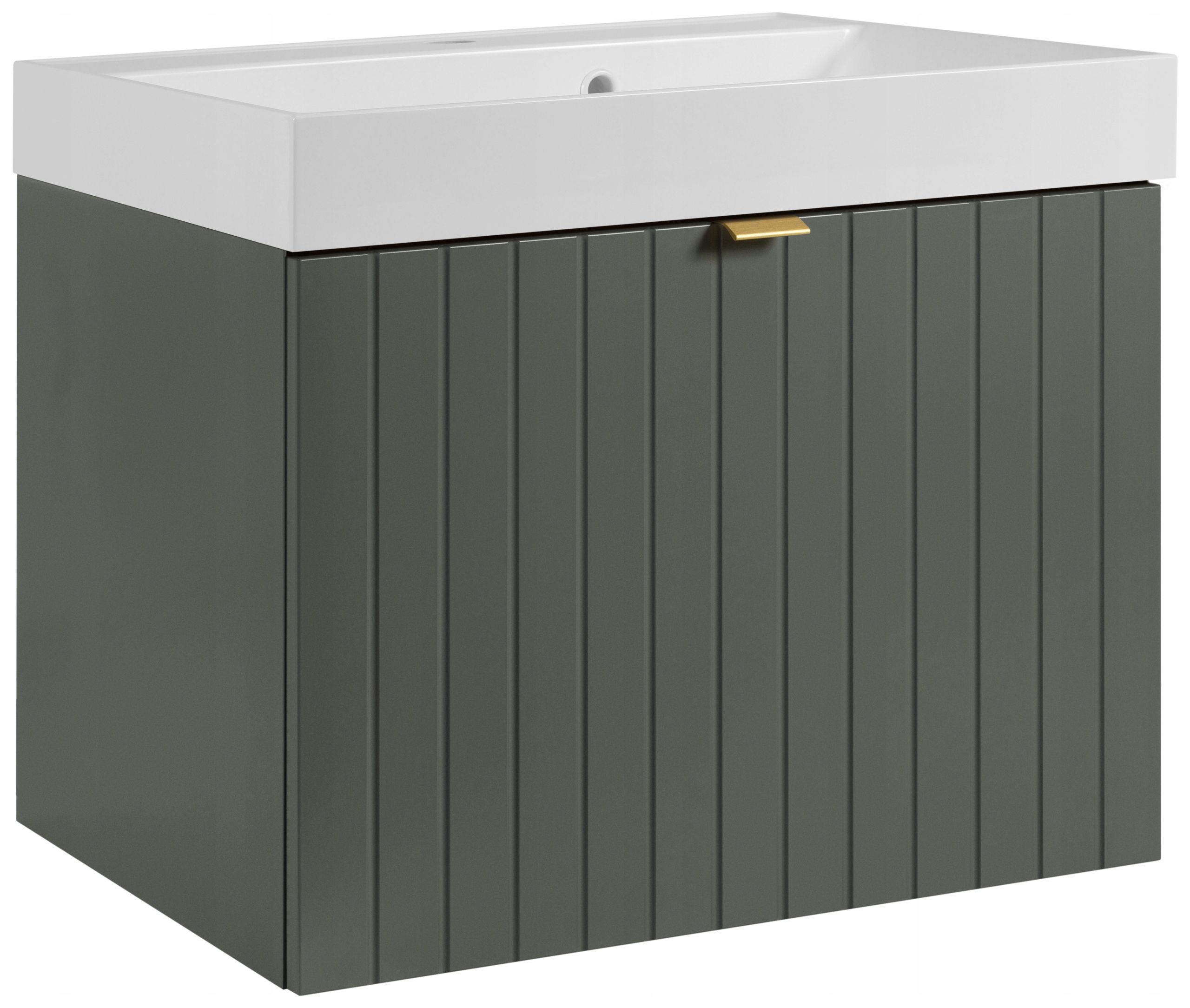 Kolekcja mebli łazienkowych HARMO łączy w sobie elegancję i nowoczesny design z praktycznymi rozwiązaniami, które doskonale sprawdzą się w każdej łazience. Fronty szafki w odcieniu zielonego półmatu wykonano z trwałej płyty MDF z delikatnym, pionowym frezowaniem, które nadaje całości subtelnego charakteru i wprowadza do wnętrza nutę nowoczesnej elegancji. Lakierowana powierzchnia korpusu i frontów zapewnia podwyższoną odporność na wilgoć oraz codzienne użytkowanie, a przy tym wyróżnia się stylowym wykończeniem.
