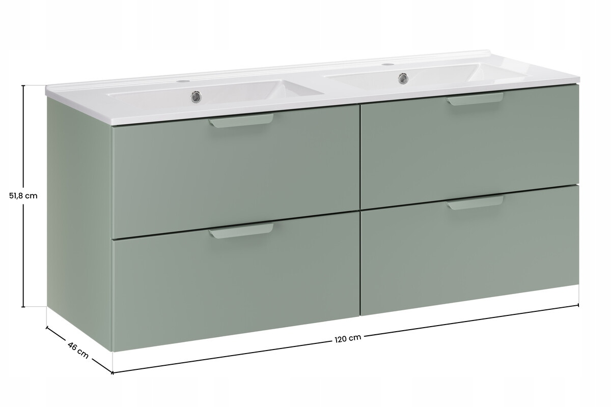 Zielony matowy zestaw łazienkowy ASTER GREEN 120 cm z umywalką dwukomorową
