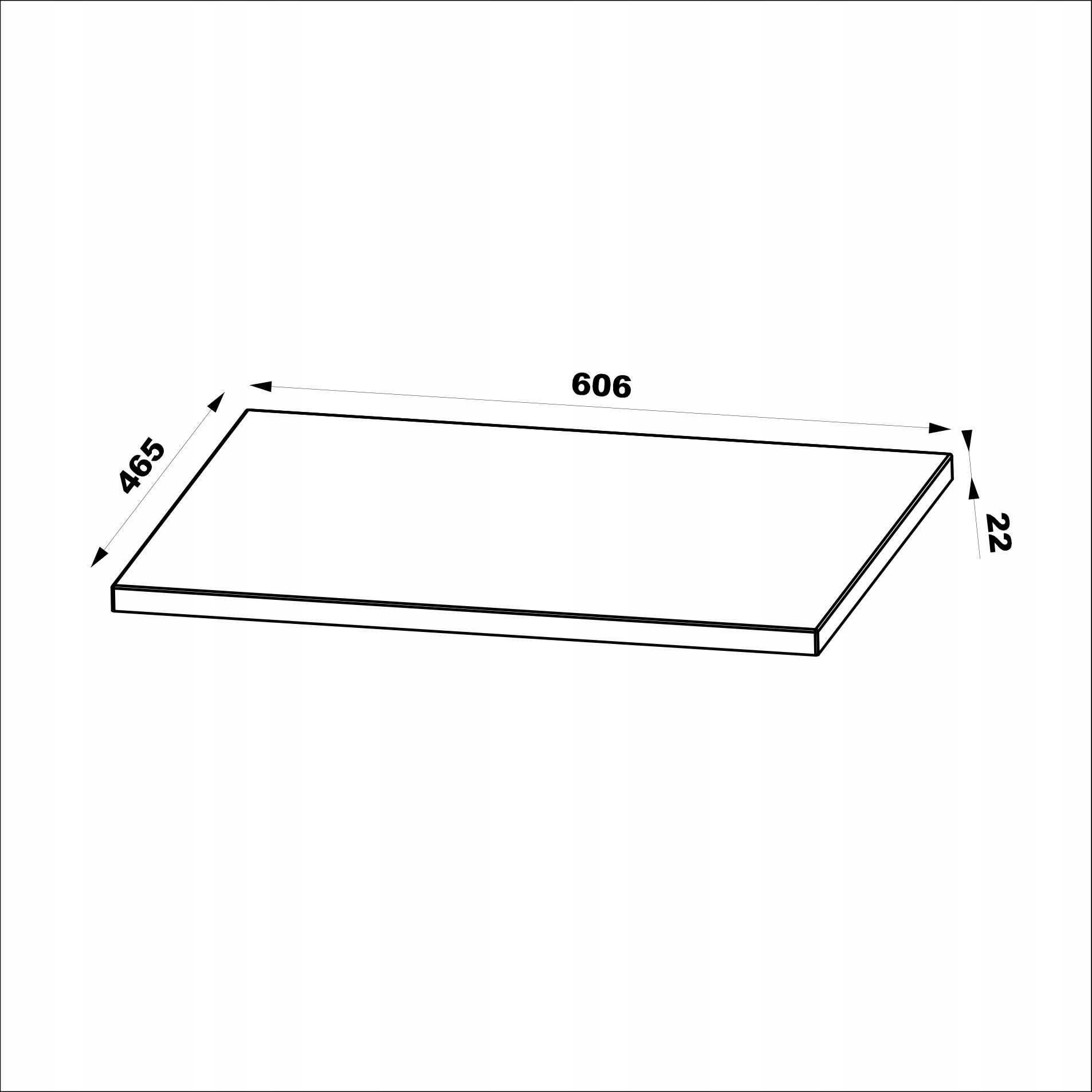 • Blat MDF biały – szerokość 60,6 cm, wysokość 2,2 cm, głębokość 46,5 cm