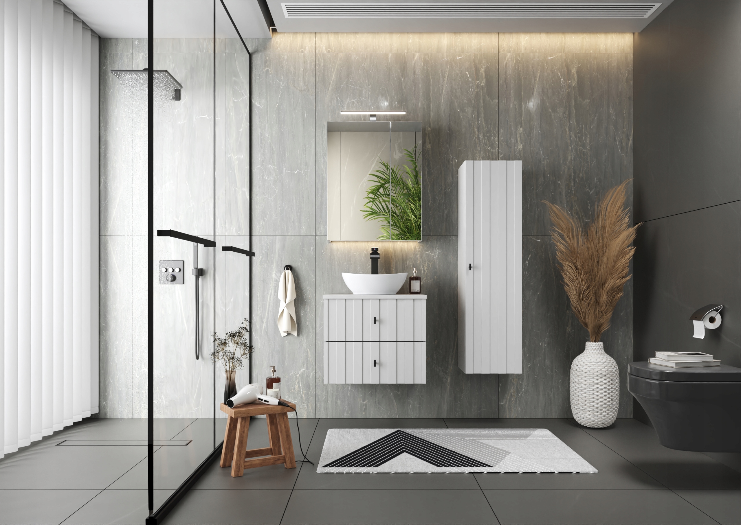 Kolekcja ELEGANTE to nowoczesne meble łazienkowe, które łączą prostą formę z eleganckimi detalami. Białe matowe wykończenie rozświetla wnętrze i nadaje mu przestronności, a złote uchwyty wprowadzają do aranżacji nutę luksusu. Dzięki solidnym materiałom i starannemu wykonaniu szafki ELEGANTE są trwałe, estetyczne i wygodne w codziennym użytkowaniu.