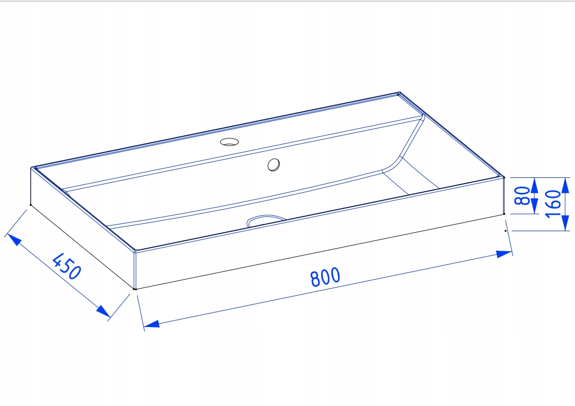 Szerokość – 80 cm, wysokość – 43 cm, głębokość – 44,5 cm. Umywalka: szerokość – 80 cm, wysokość – 8 cm, głębokość – 42 cm. Korpus i front w kaszmirowym półmacie, lakierowane. Umywalka z marmuru syntetycznego w kolorze białym. Uchwyty metalowe w trzech wariantach kolorystycznych.