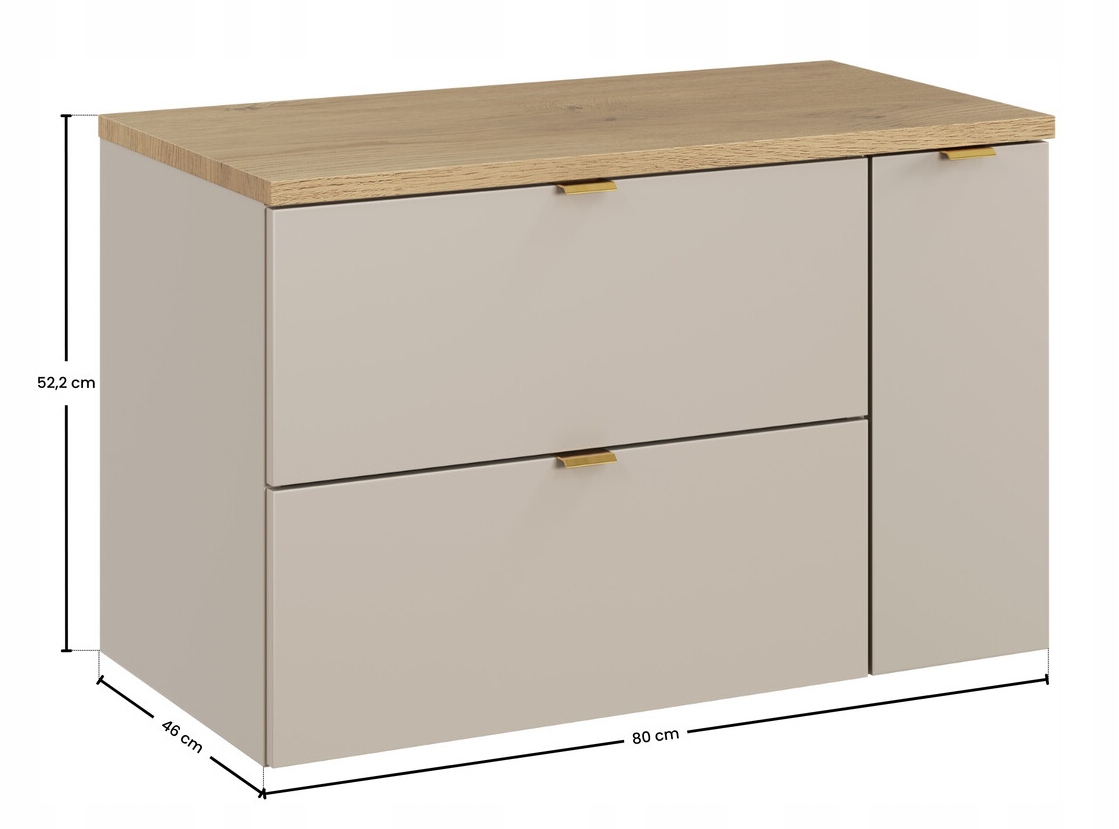 • Szafka pod umywalkę 60 cm — szerokość 60 cm, wysokość 50 cm, głębokość 46 cm