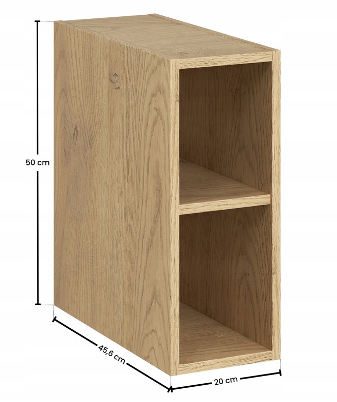 • Regał otwarty 20 cm — szerokość 20 cm, wysokość 50 cm, głębokość 44 cm