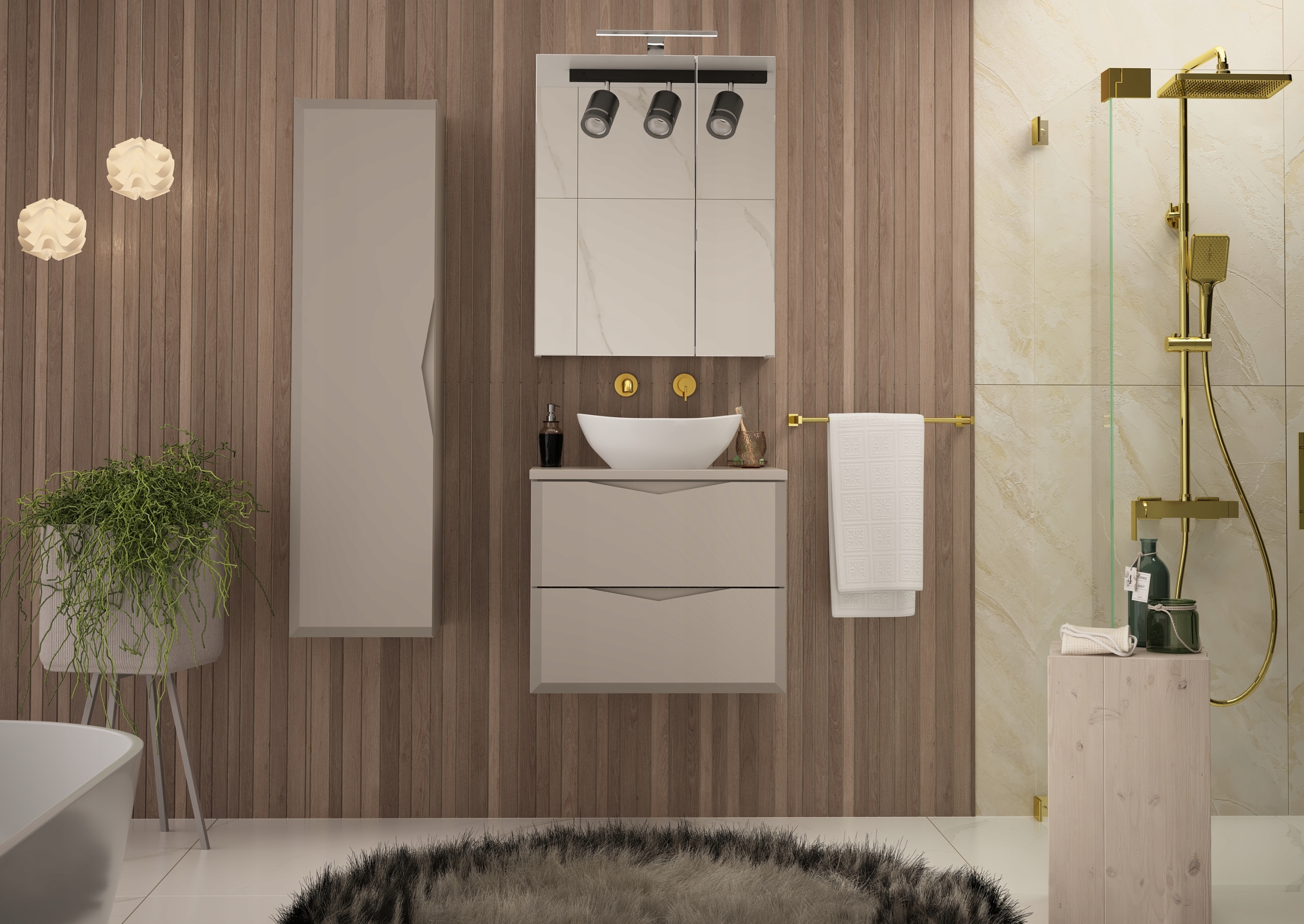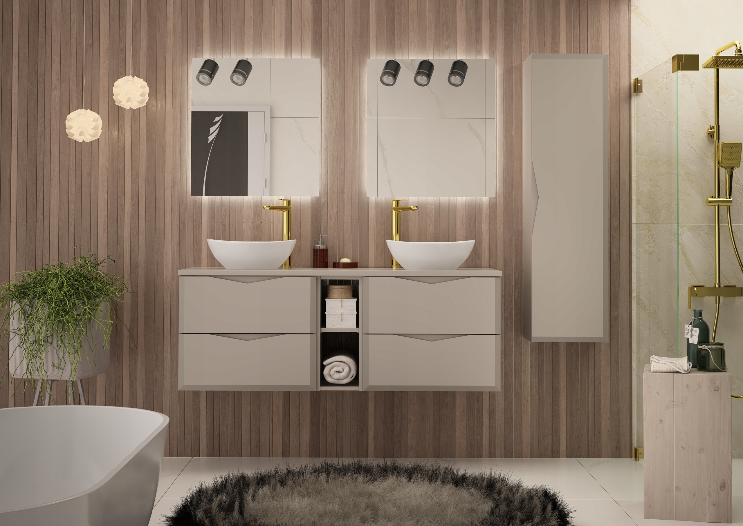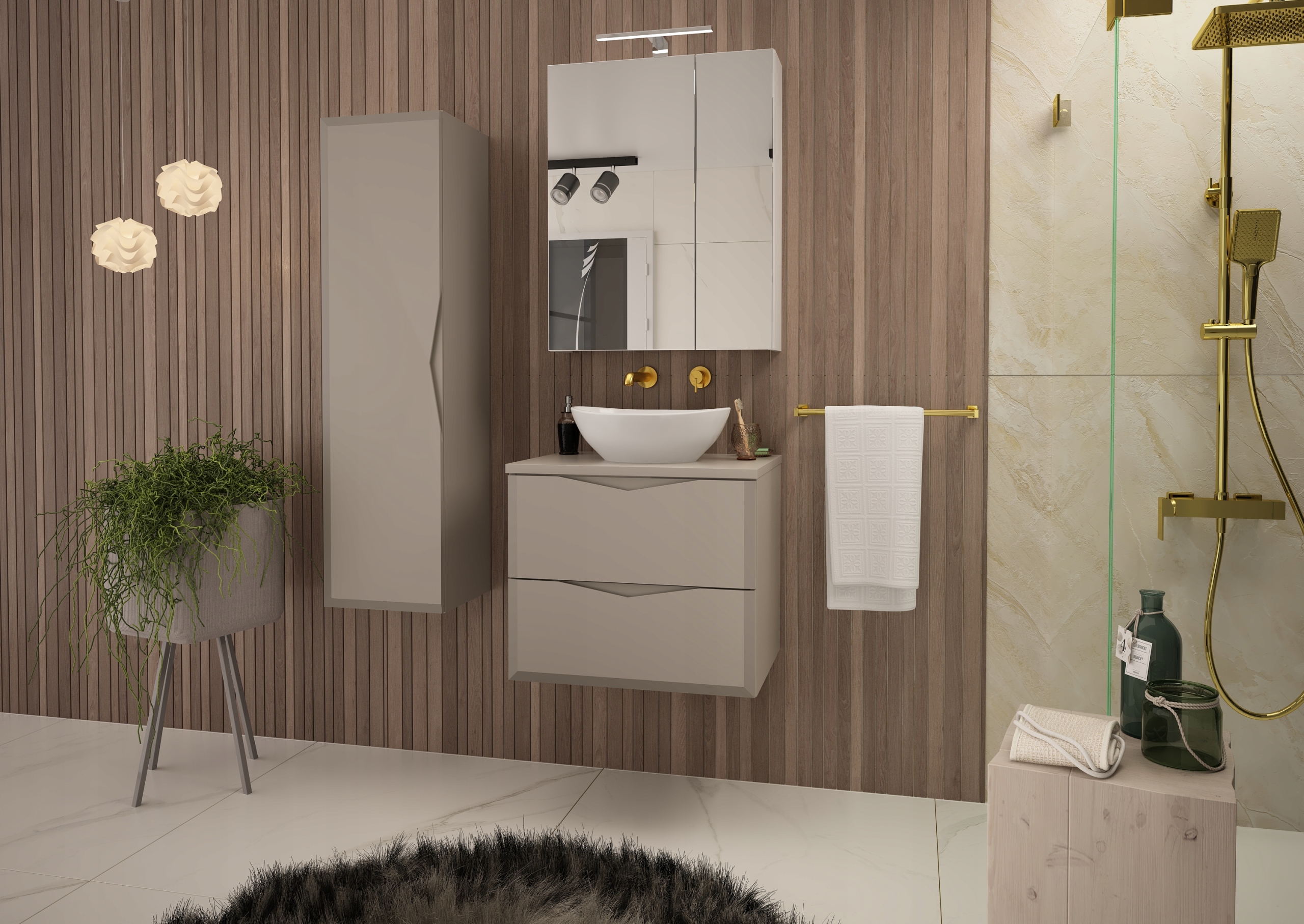 Kolekcja DELICA to eleganckie meble łazienkowe, które wyróżniają się pionowymi frezowaniami i nowoczesnym stylem. Matowy odcień kaszmiru wprowadza do wnętrza subtelną elegancję i ciepły klimat, a frezowane uchwyty zintegrowane z frontami podkreślają wyjątkowy charakter mebla. Dzięki solidnym materiałom i starannemu wykończeniu szafki DELICA są trwałe, funkcjonalne i estetyczne.