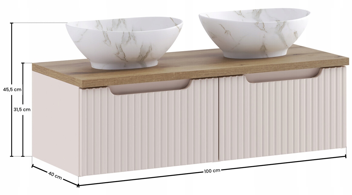 Kaszmirowa szafka łazienkowa NOVA KASZMIR 100 cm z dwiema umywalkami nablatowymi PATI